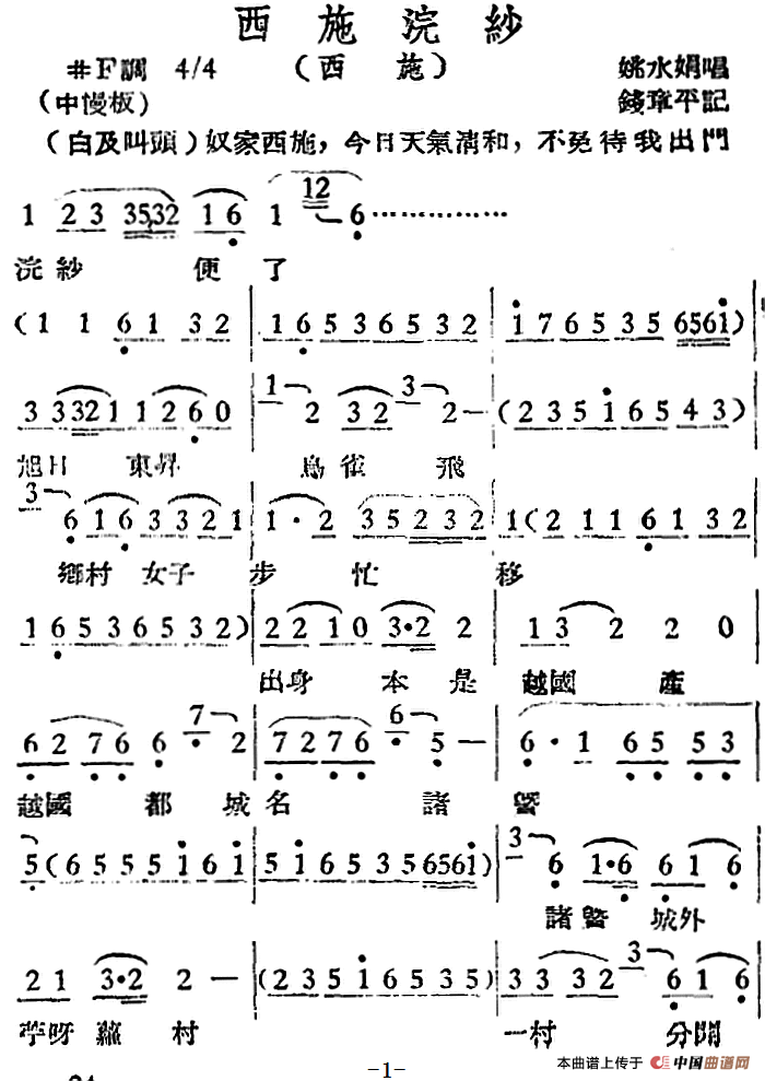 作曲:钱章平记谱 演唱(奏):姚水娟 来源:中国曲谱网 上传:热爱音乐88