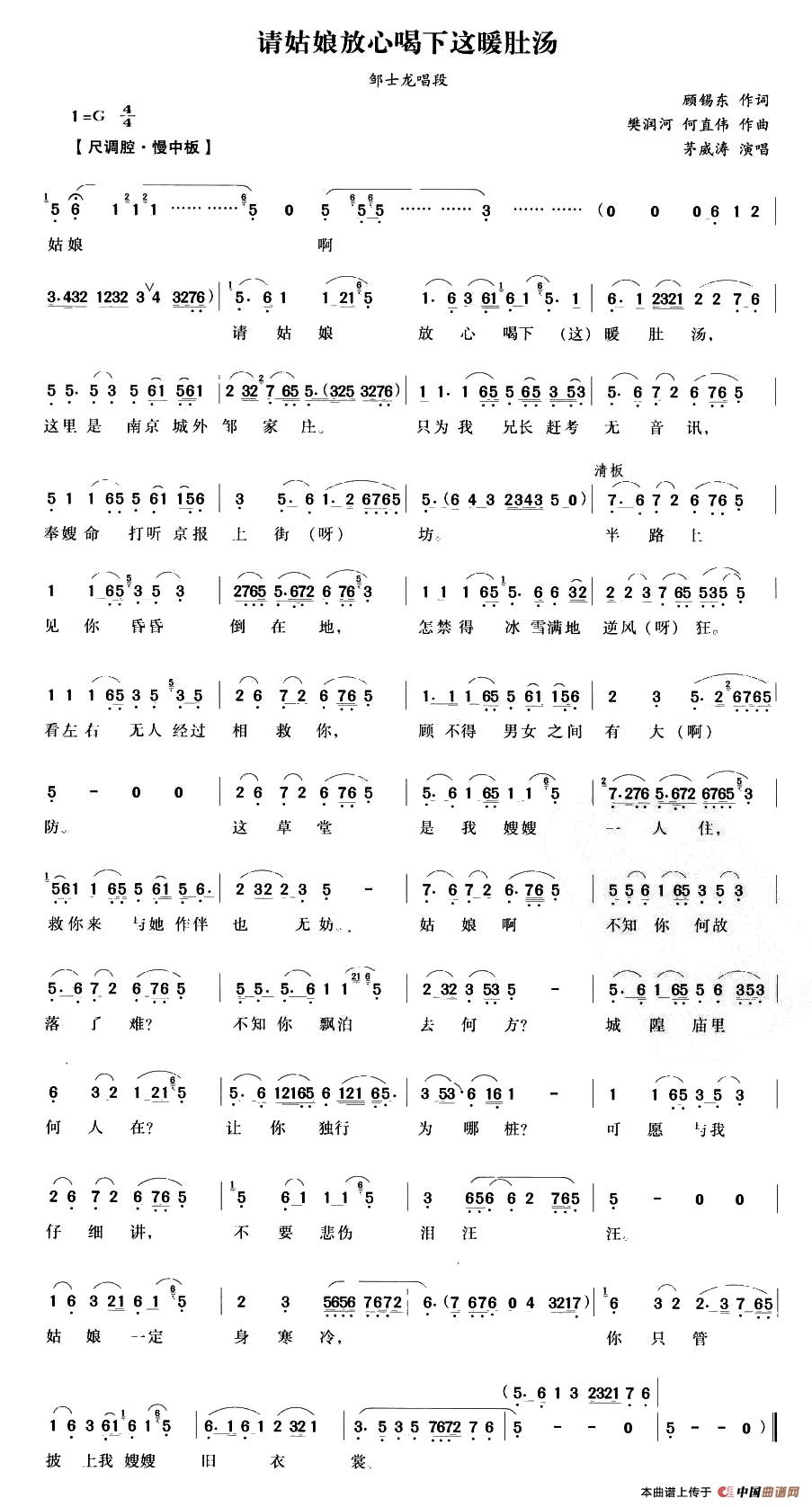 关于《请姑娘放心喝下这暖肚汤》曲谱的评论