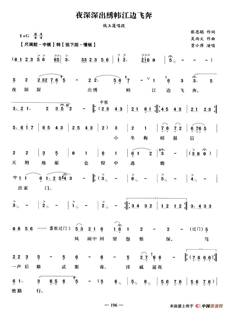 关于《夜深深出绣帏江边飞奔》曲谱的评论