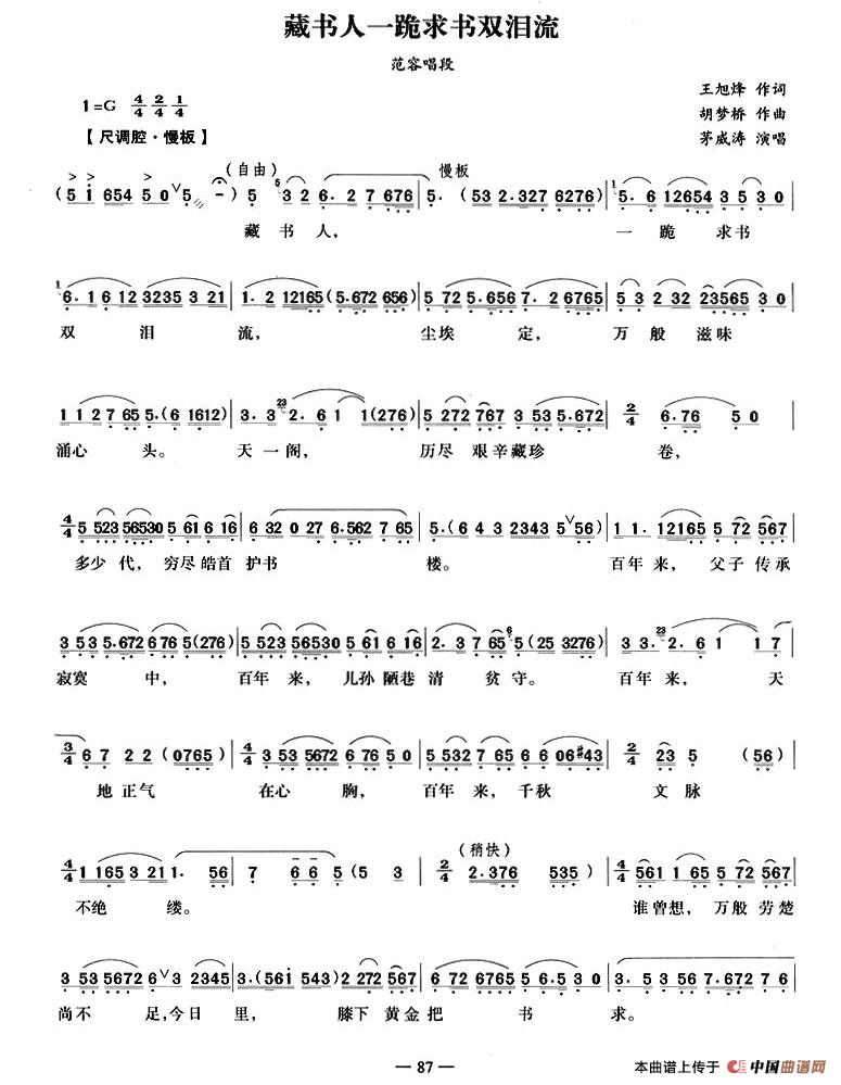 关于《藏书人一跪求书双泪流》曲谱的评论