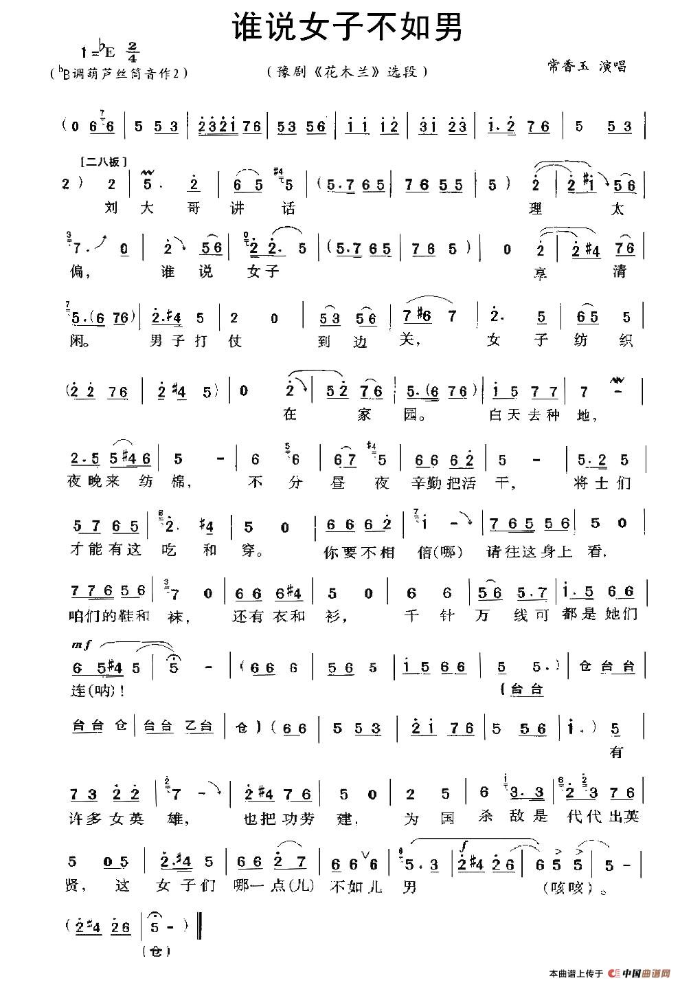 关于《谁说女子不如男》曲谱的评论