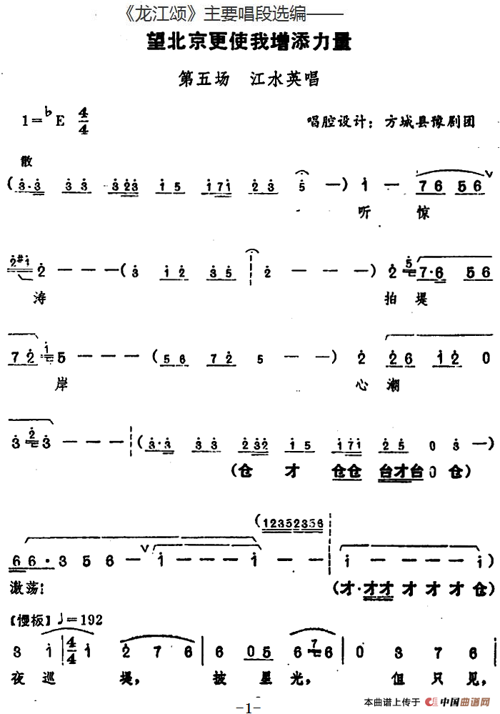 关于《《龙江颂》主要唱段选编——望北京更使我增添力量 第五场 江水英唱 》曲谱的评论