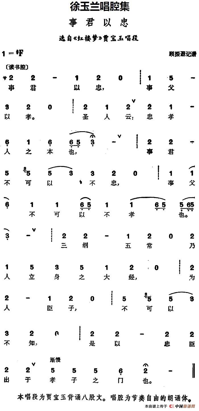徐玉兰唱腔集:事君以忠(选自《红楼梦》贾宝玉唱段)