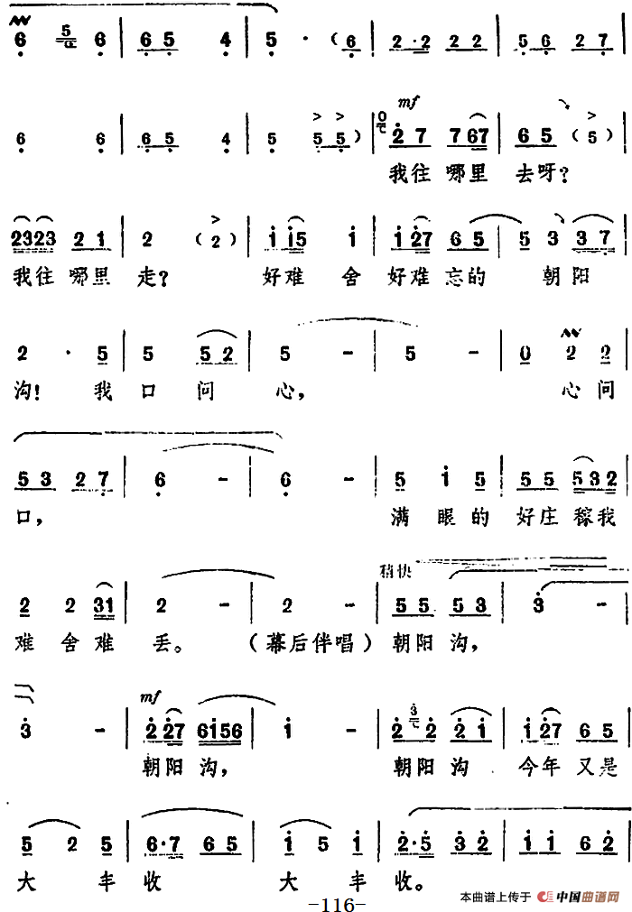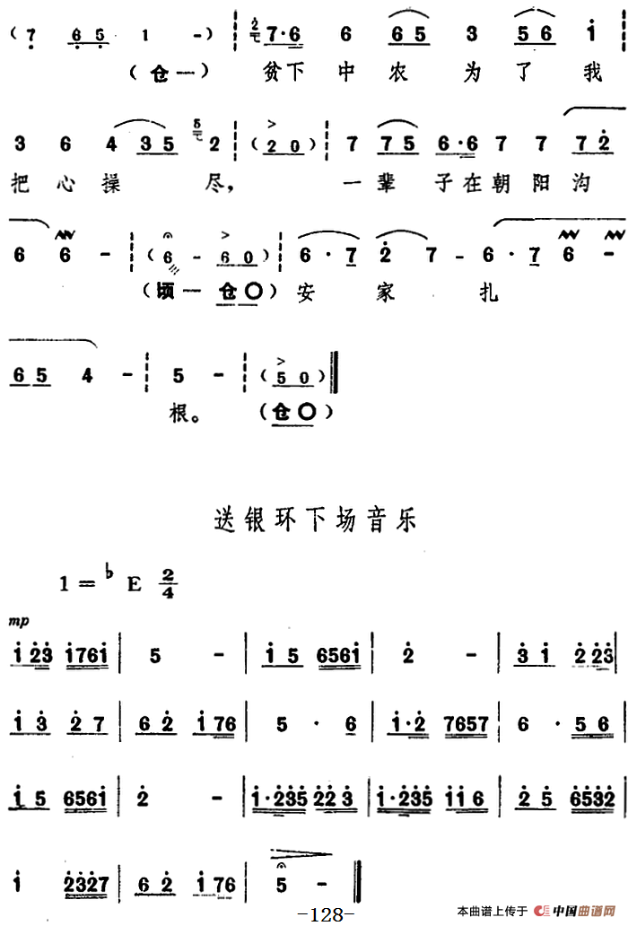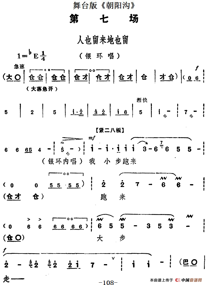 舞台版《朝阳沟》主旋律乐谱之第七场