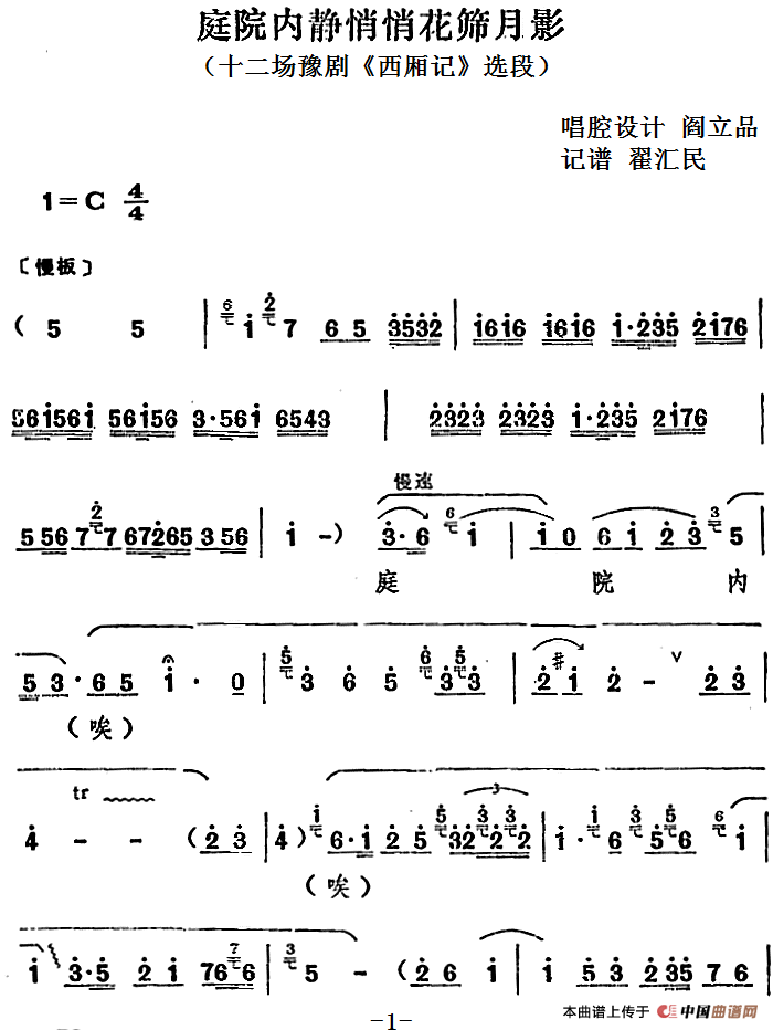 关于《庭院内静悄悄花筛月影》曲谱的评论