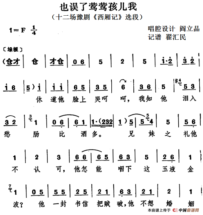 也误了莺莺孩儿我(十二场豫剧《西厢记》选段)