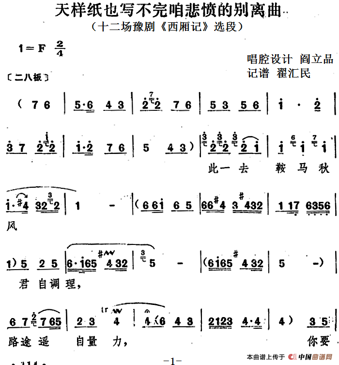 关于《天样纸也写不完咱悲愤的别离曲》曲谱的评论