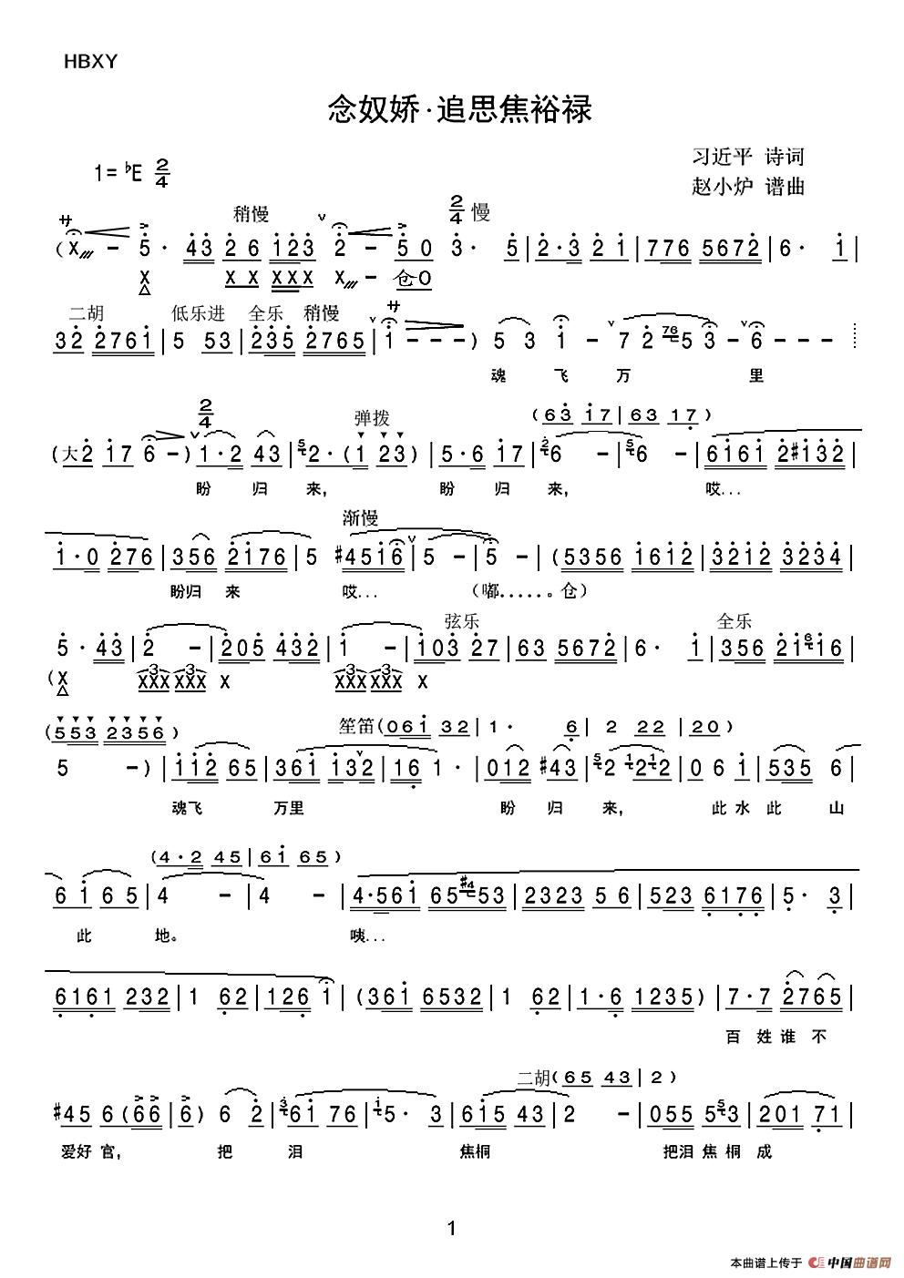 关于《念奴娇-追思焦裕禄》曲谱的评论