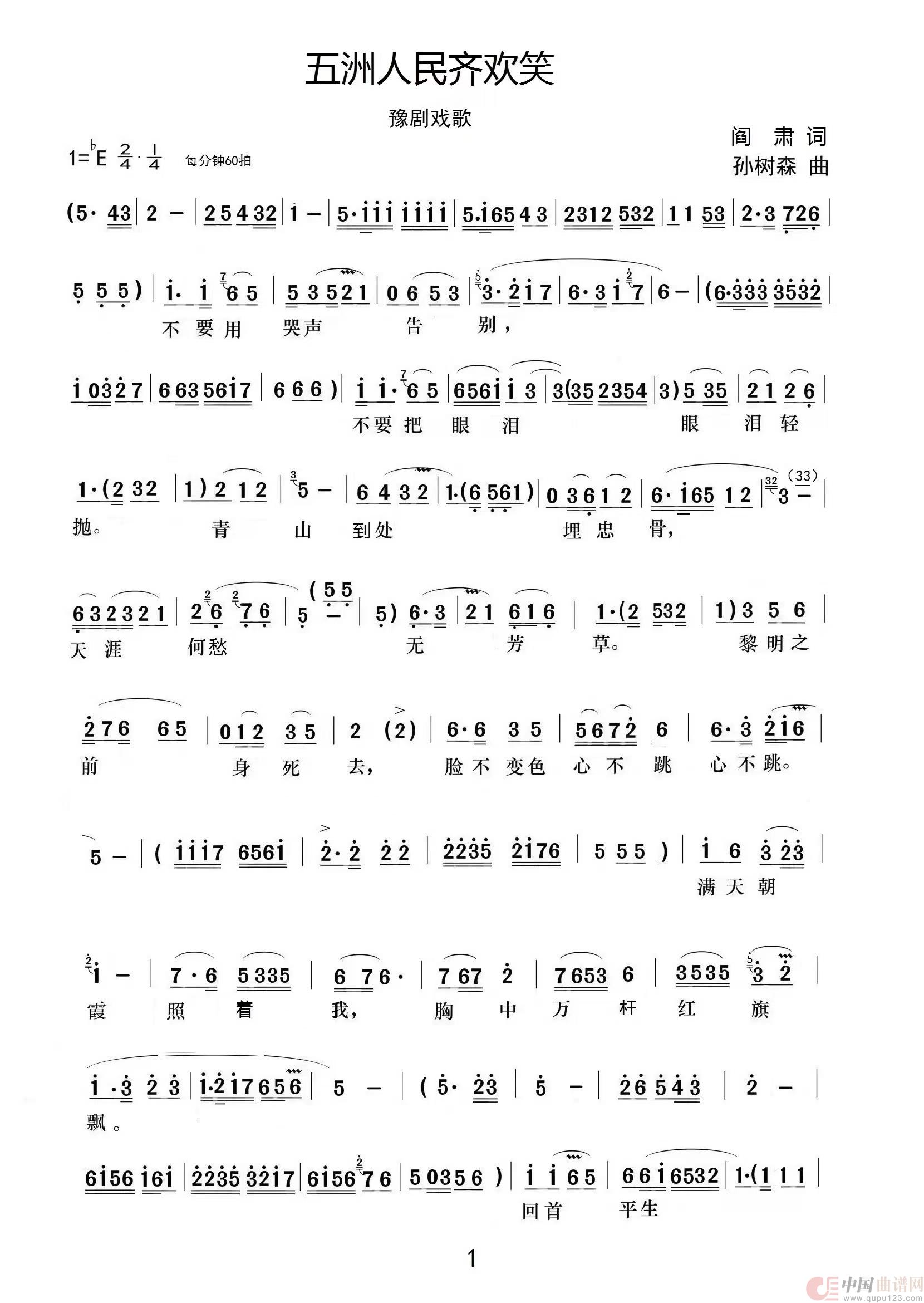 关于《五洲人民齐欢笑1页》曲谱的评论