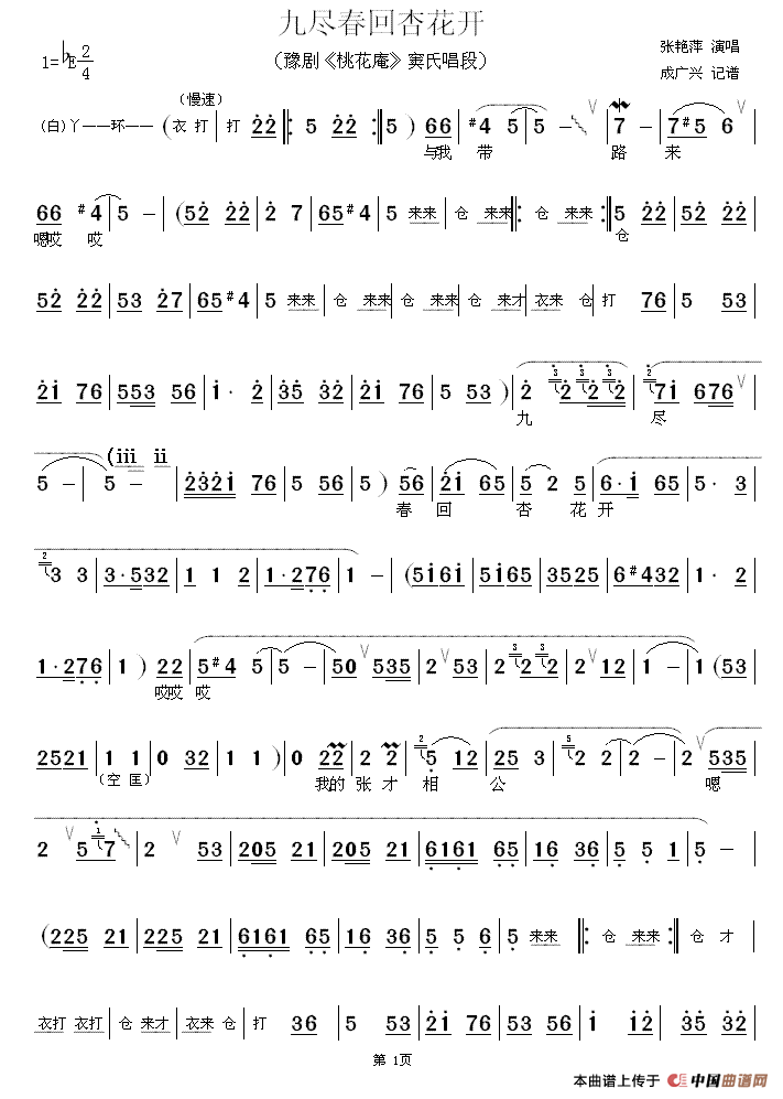 请上传田敏唱豫剧《桃花庵》选段:九尽春回杏花开的曲谱。谢谢! [回复]