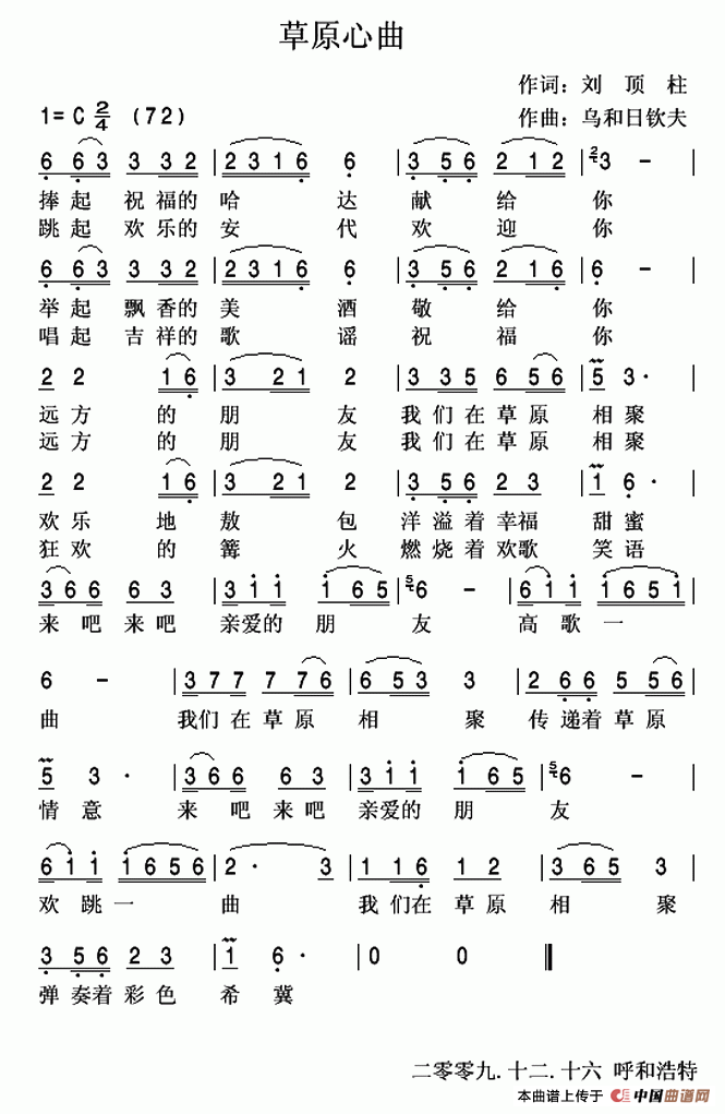 《草原心曲》文本歌词