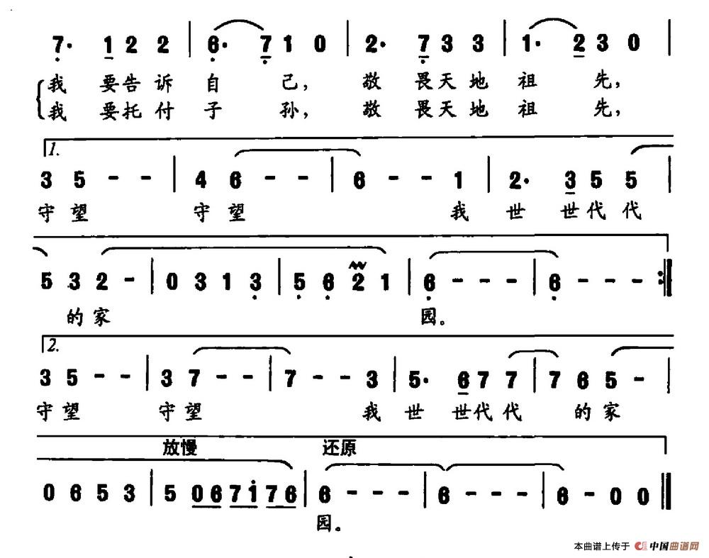 《守望我的家园》文本歌词