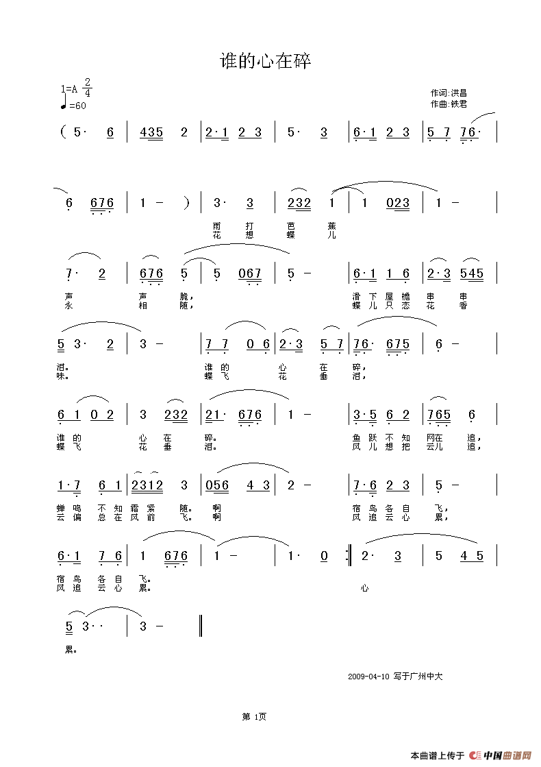 谁的心在碎(洪昌词 铁君曲)