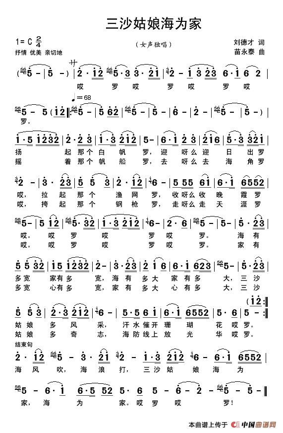 三沙姑娘海为家海为家。