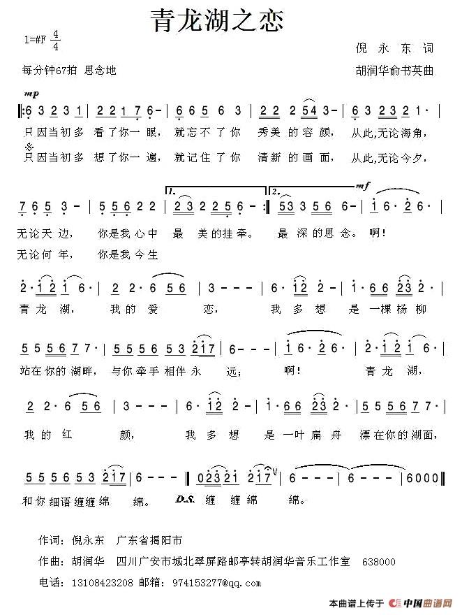 青龙湖之恋(倪永东词 胡润华 俞书英曲)(1)_原文件名:青龙湖之恋(简谱).jpg