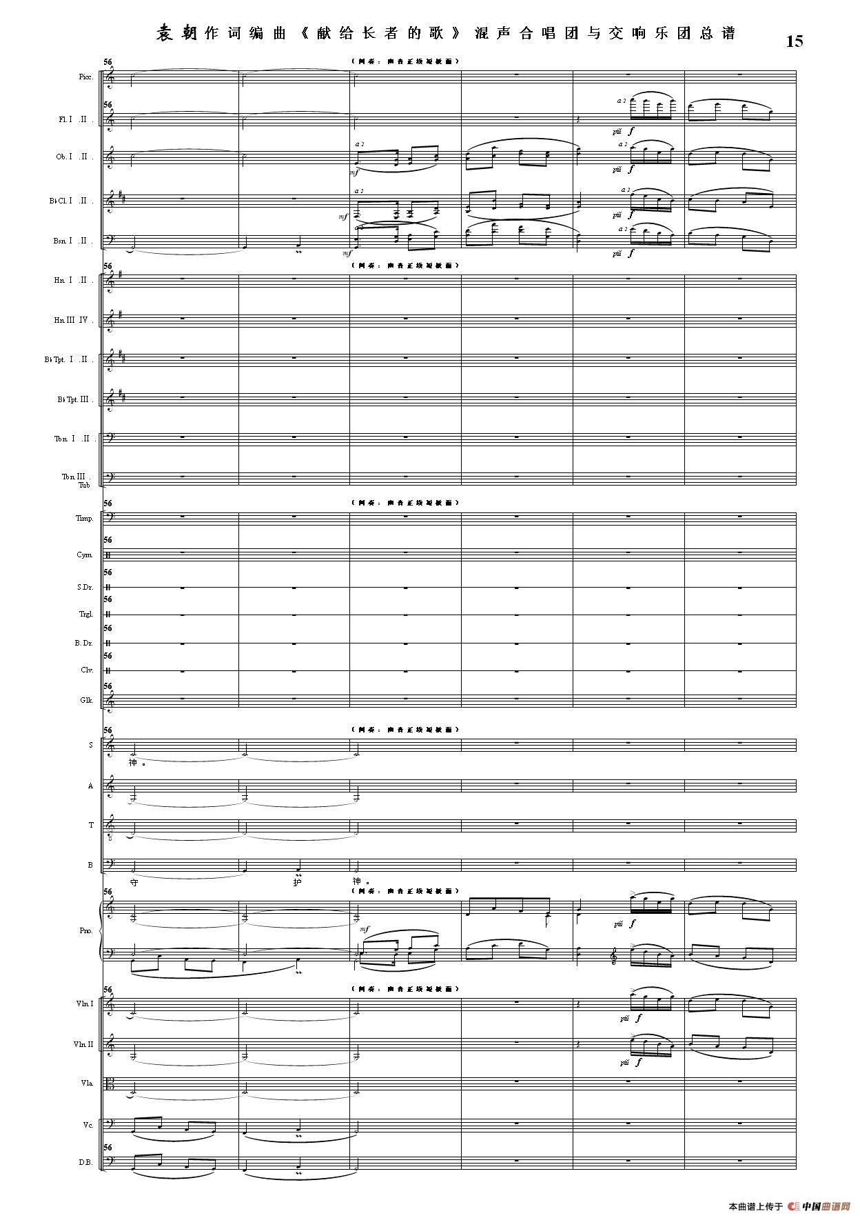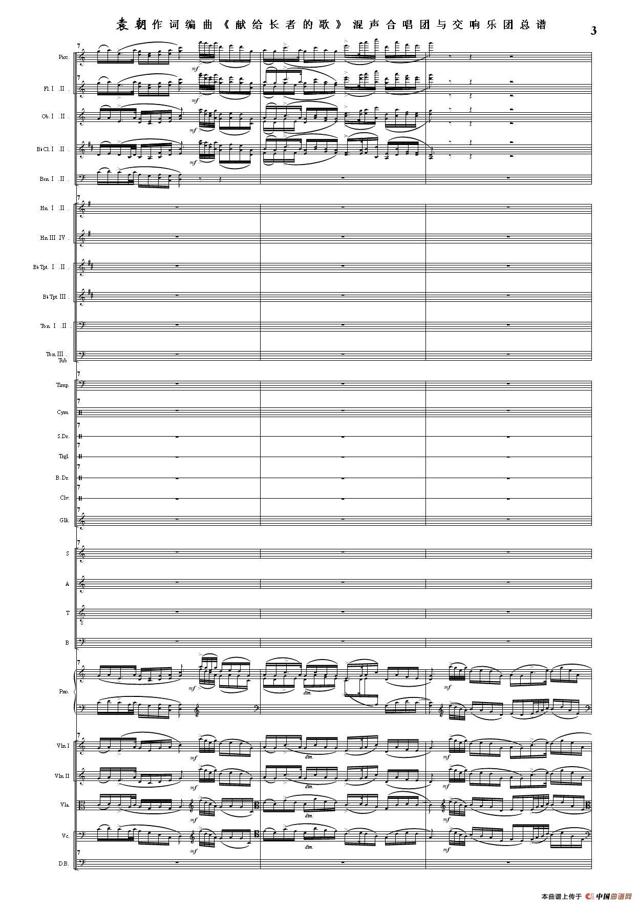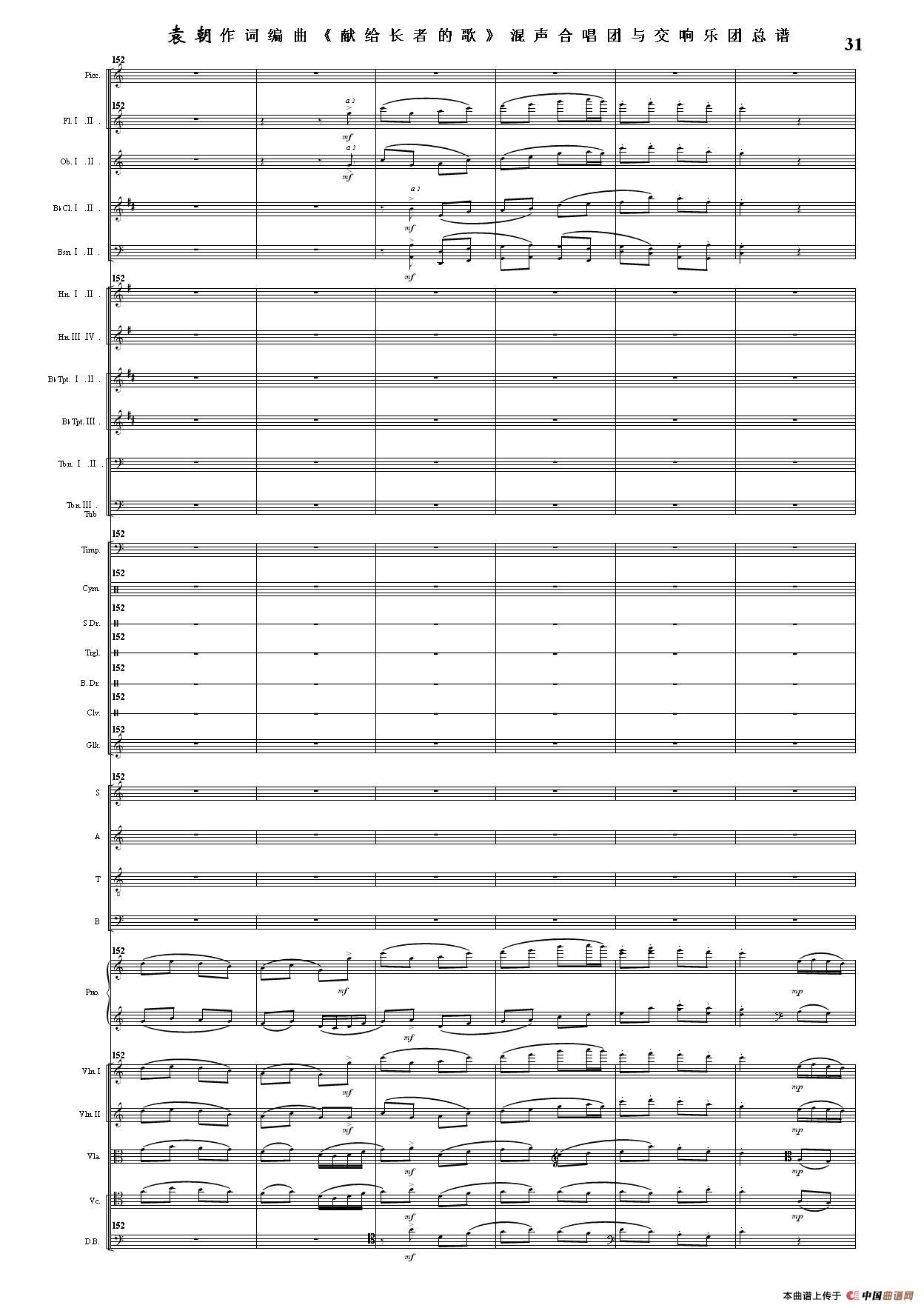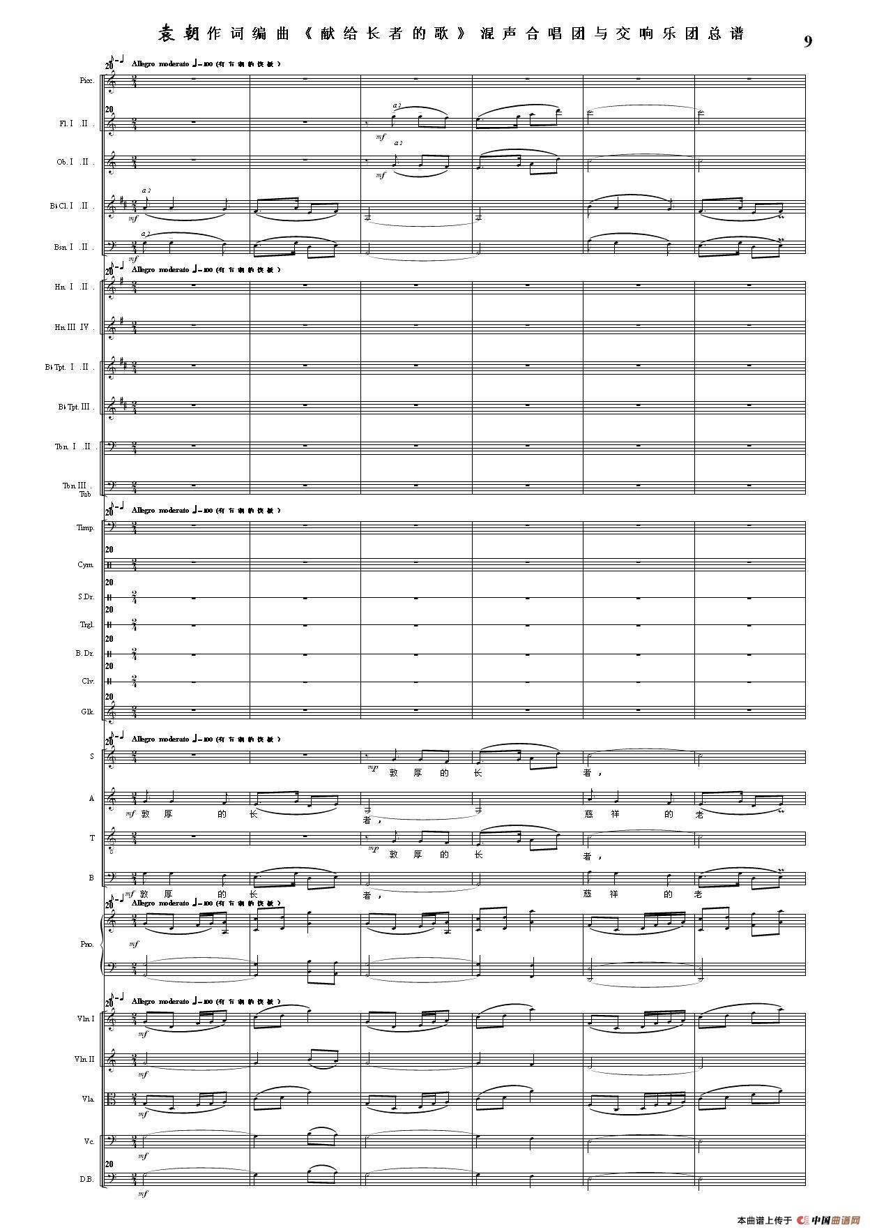 (三)这里发表的是《献歌》的混声合唱与交响乐团总谱,连接的音频也是从制谱软件提取的混声合唱与交响乐团的音频,不是音乐会实况录音。因而只能听合唱音色而不能听见歌词。抱歉!