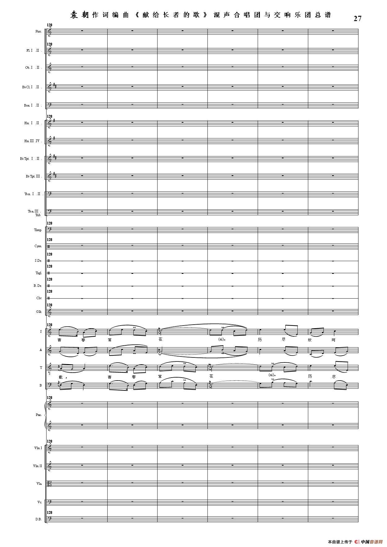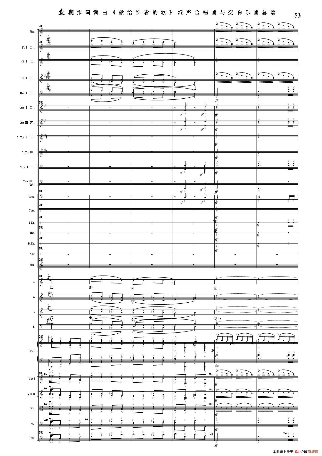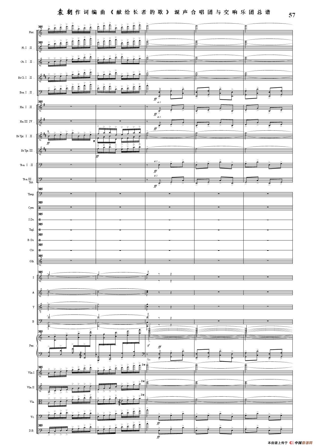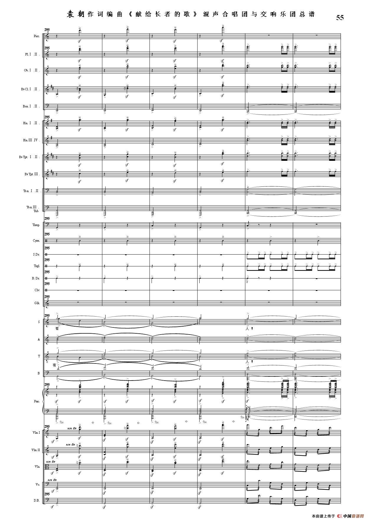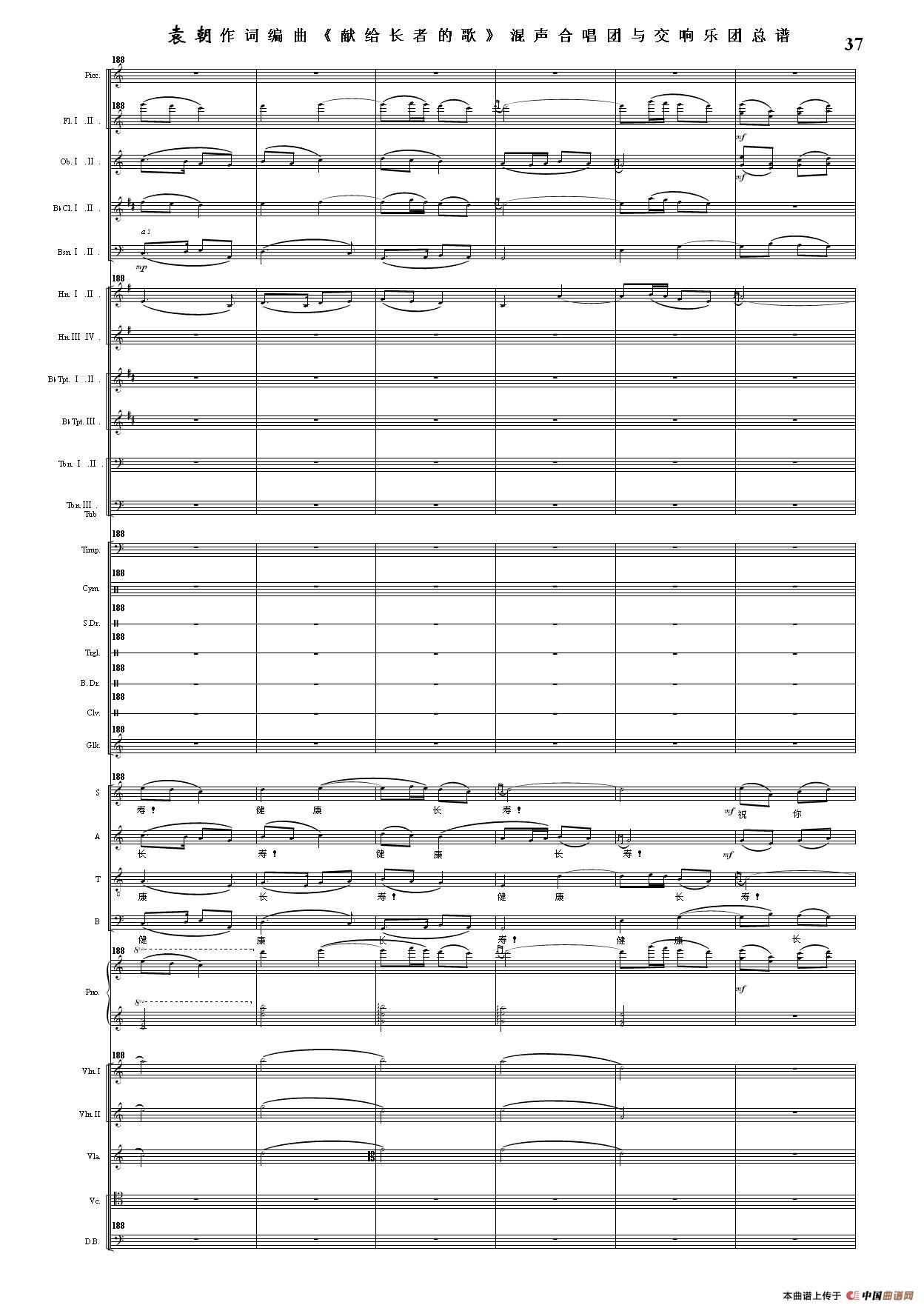 (三)这里发表的是《献歌》的混声合唱与交响乐团总谱,连接的音频也是从制谱软件提取的混声合唱与交响乐团的音频,不是音乐会实况录音。因而只能听合唱音色而不能听见歌词。抱歉!