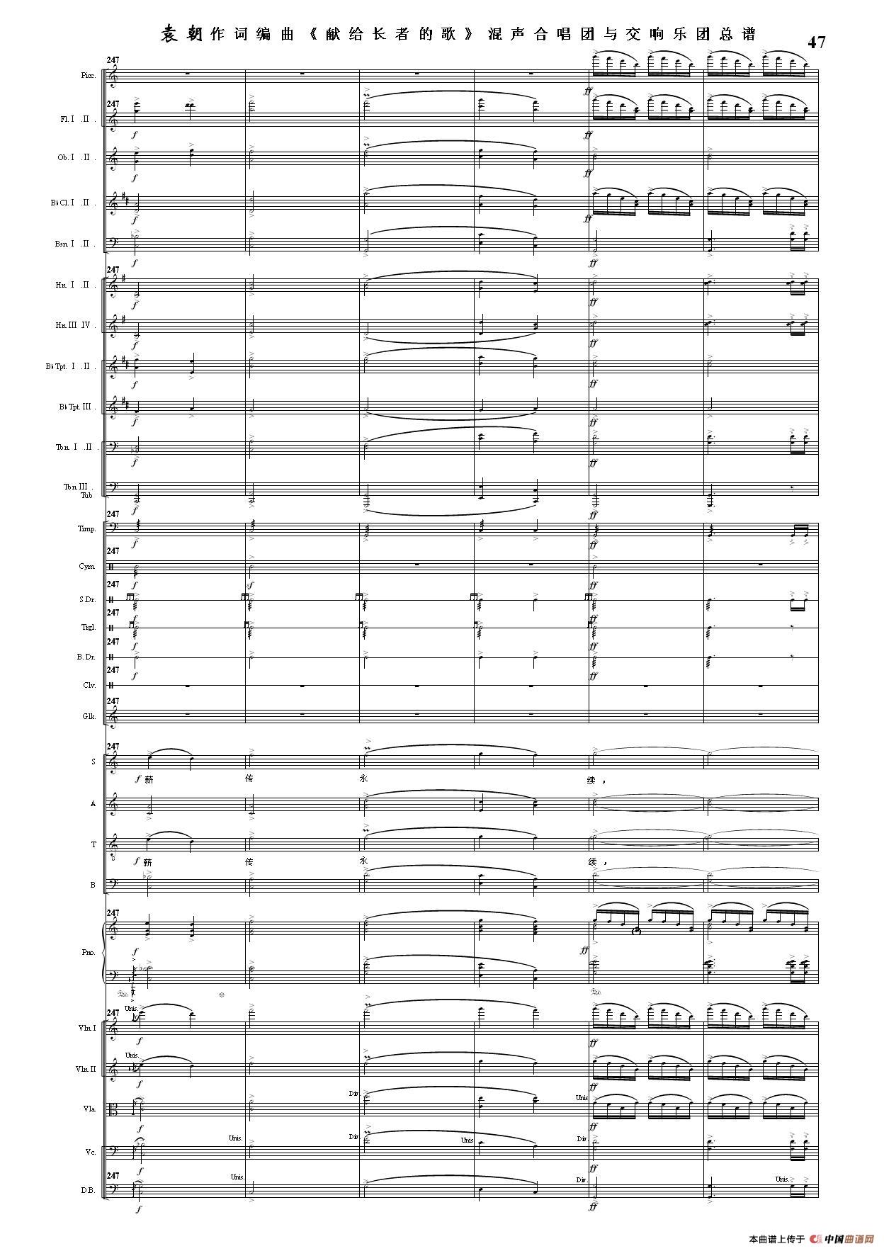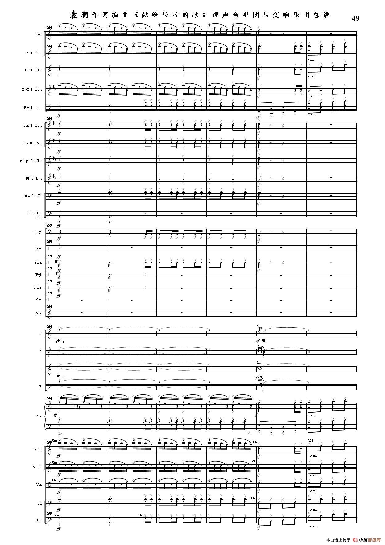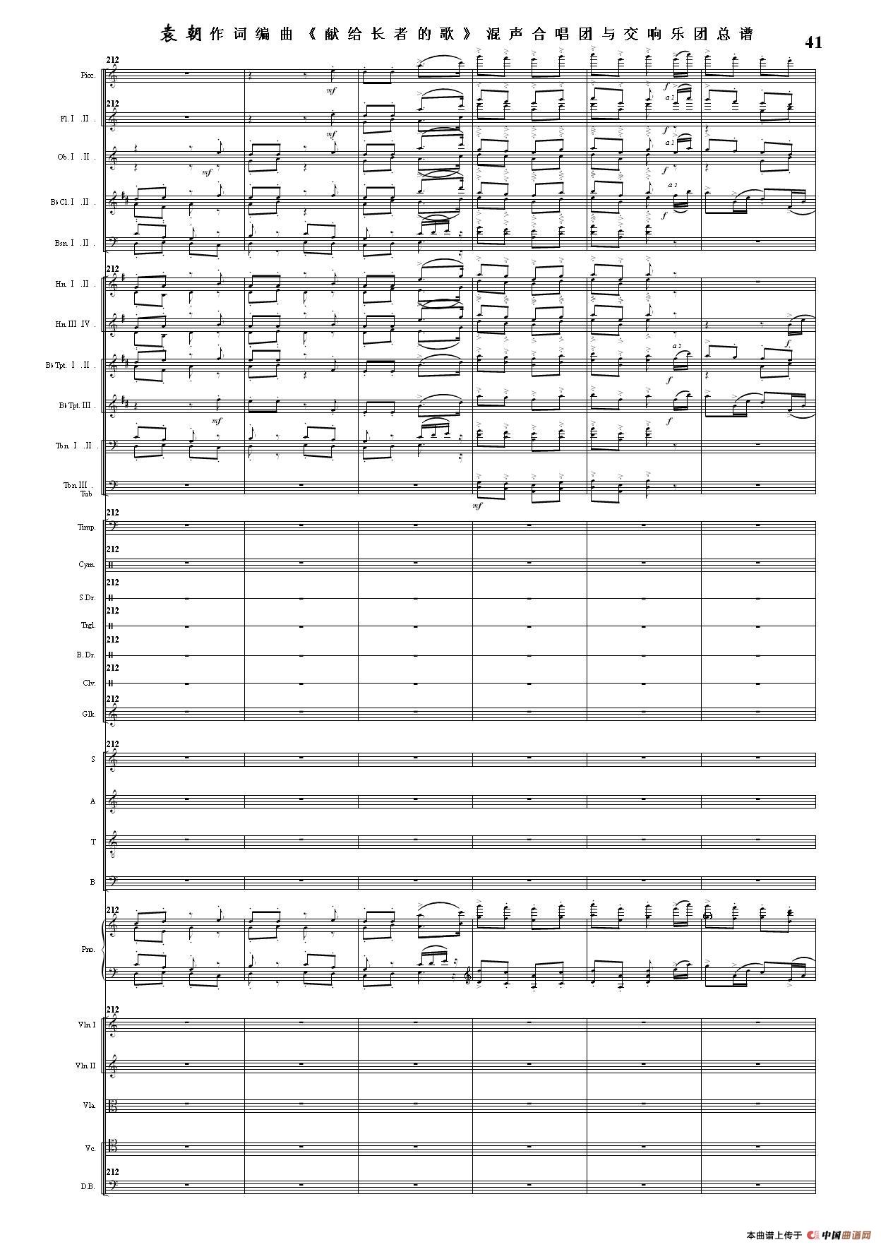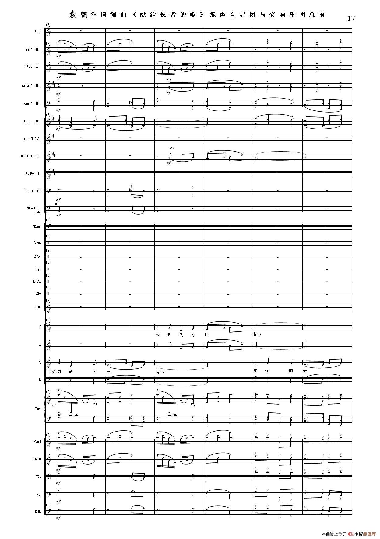(三)这里发表的是《献歌》的混声合唱与交响乐团总谱,连接的音频也是从制谱软件提取的混声合唱与交响乐团的音频,不是音乐会实况录音。因而只能听合唱音色而不能听见歌词。抱歉!
