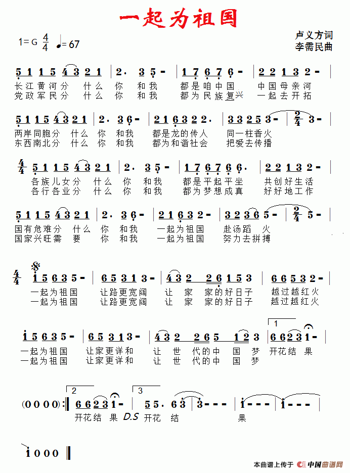 提示:在曲谱图片上单击右键,选择"图片另存为..."即可将曲谱保存到您的电脑中,打印时候可将图片插入到WORD中,调整合适大小打印即可。