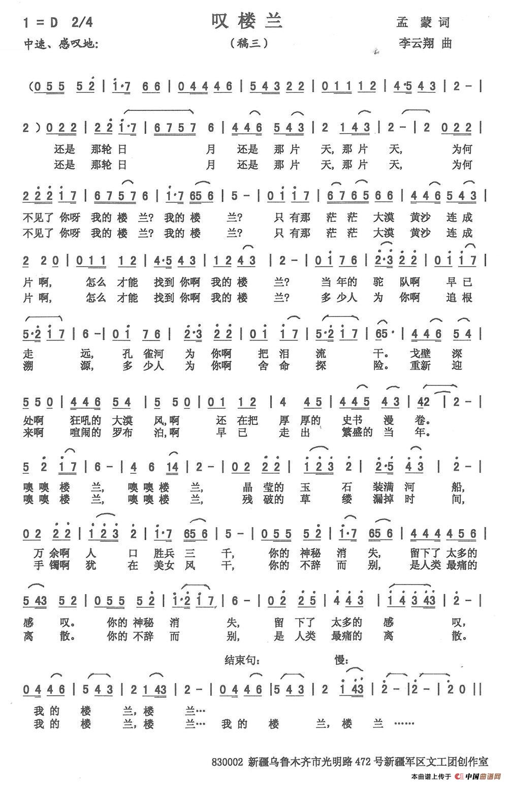 叹楼兰(孟蒙词,李云翔曲)(1)_原文件名:叹楼兰.jpg