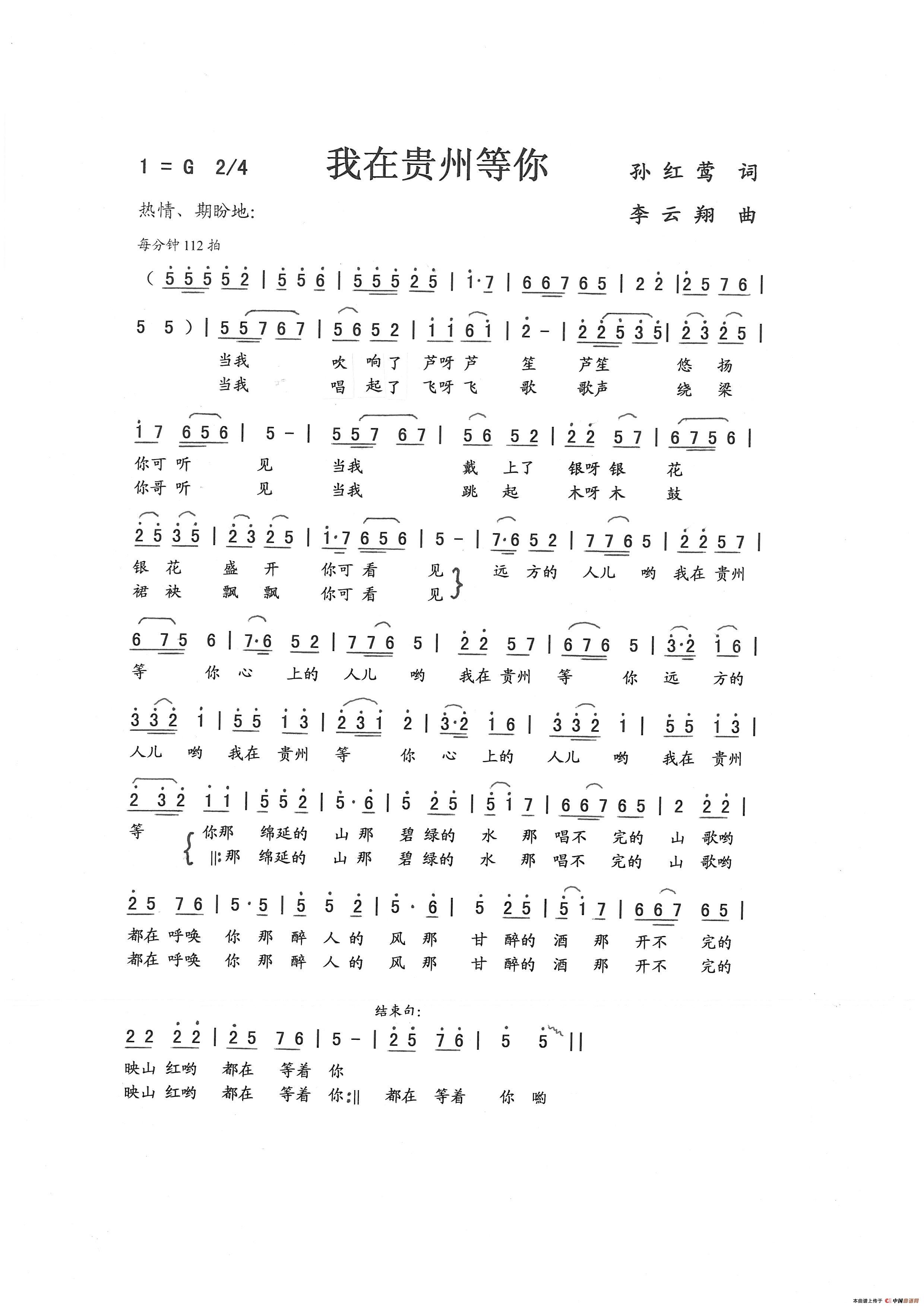 我在贵州等你(孙红莺词 李云翔曲)(1)_原文件名:我在贵州等你.jpg