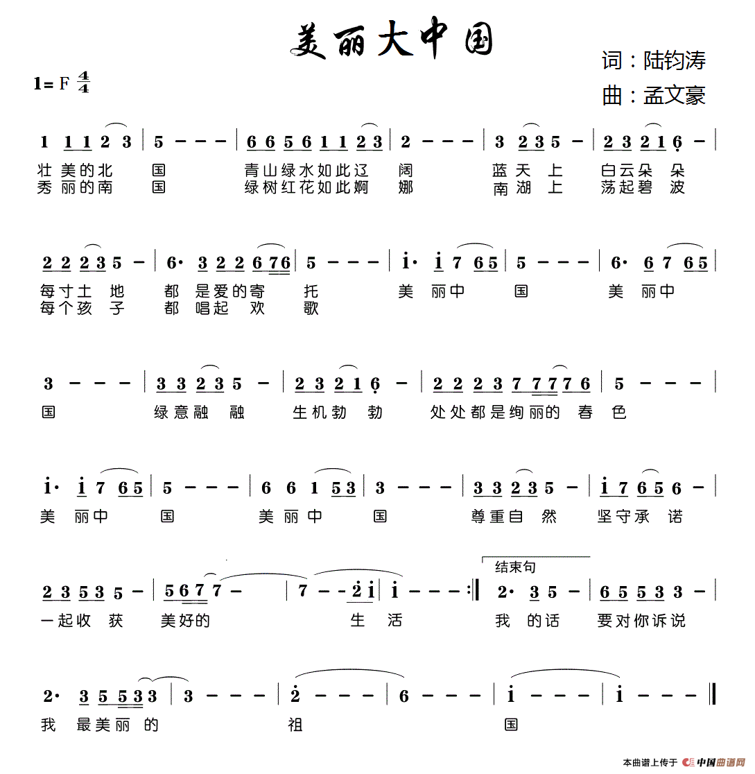 《美丽大中国》文本歌词