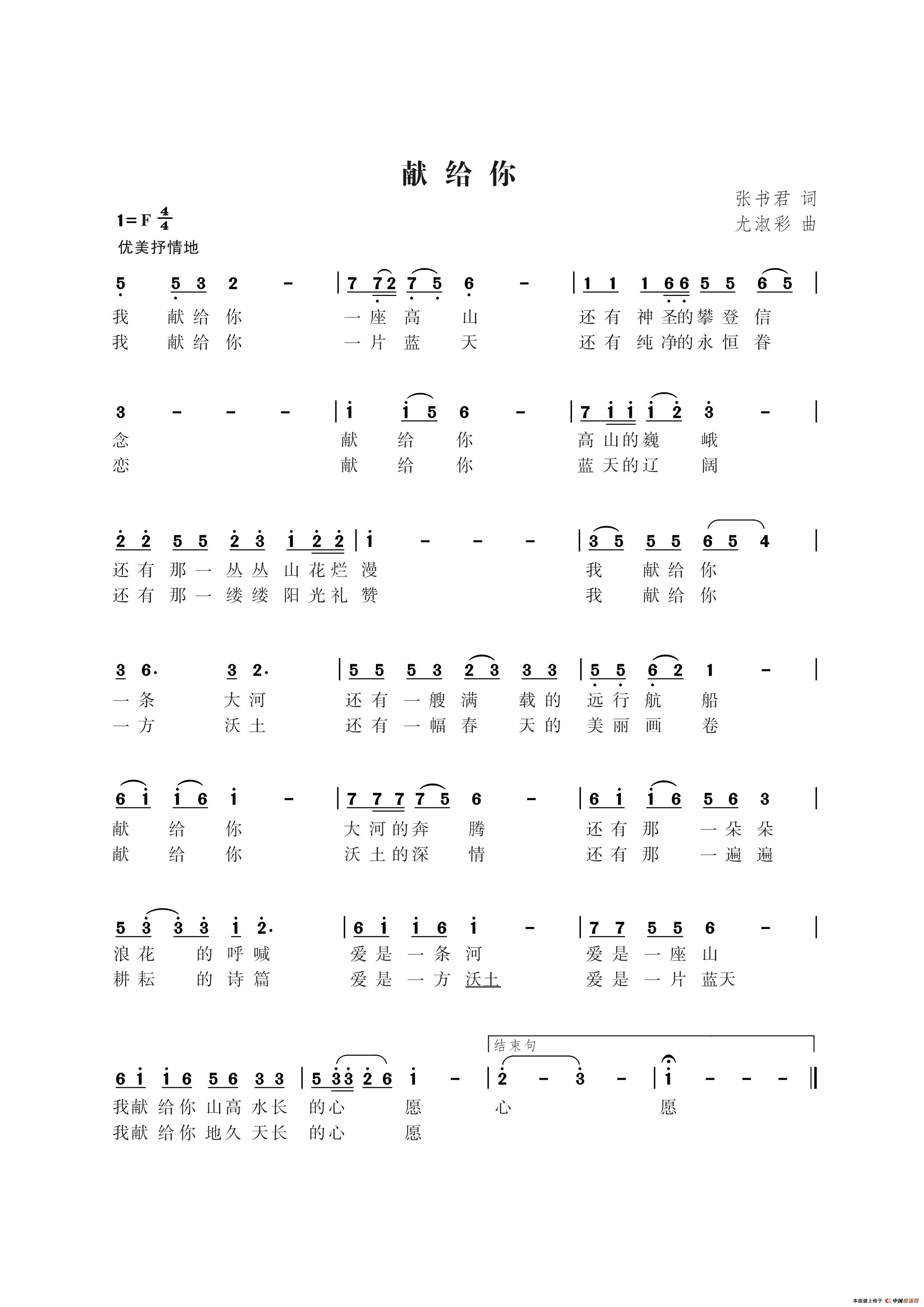 献给你(张书君词 尤淑彩曲)(1)_原文件名:献给你张书君词尤淑彩谱曲.jpg