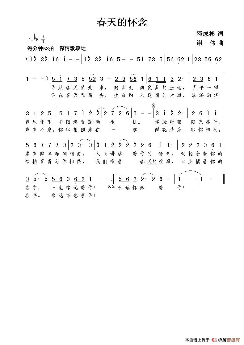 作词:邓成彬   作曲:谢伟   来源:谱友谢伟上传   上传:谢伟   日期:2014-08-27   浏览次数: