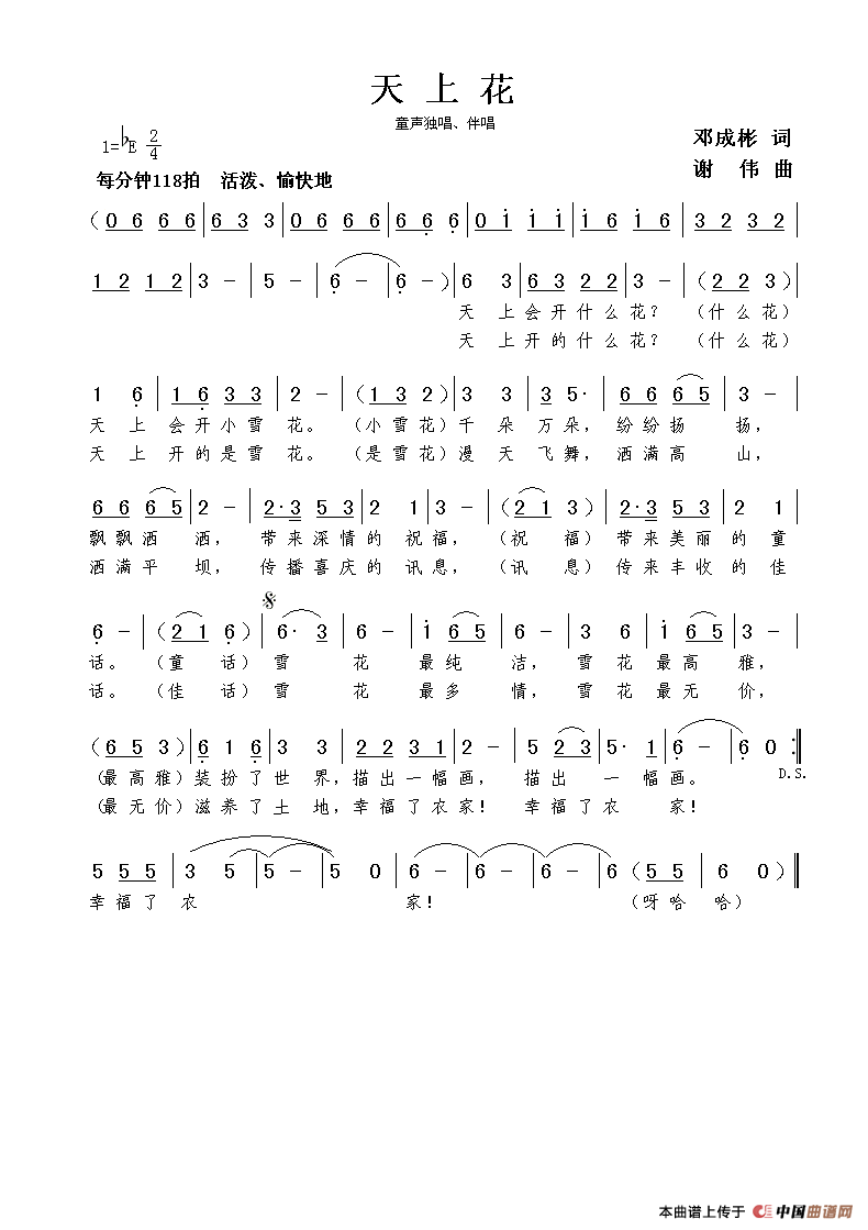 作词:邓成彬   作曲:谢伟   来源:谱友谢伟上传   上传:谢伟   日期:2014-08-27   浏览次数: