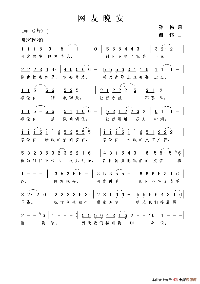 作词:孙伟   作曲:谢伟   来源:谱友谢伟上传   上传:谢伟   日期:2014-08-29   浏览次数: