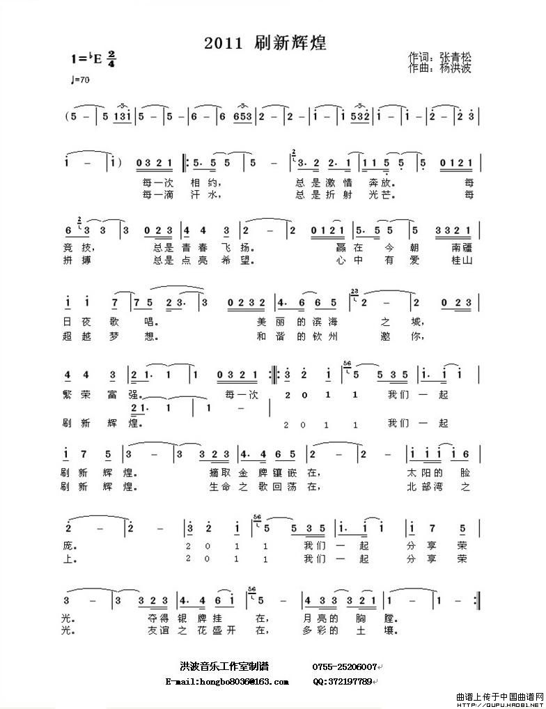 作词:张青松   作曲:杨洪波   格式:简谱   来源:杨洪波(作曲)原创上传   上传:杨洪波   日期:2010-06-05   浏览次数: