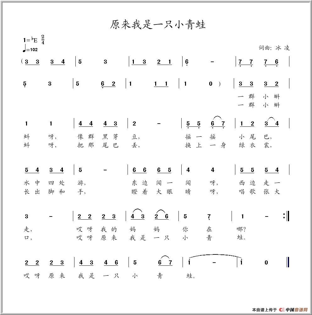 《原来我是一只小青蛙》文本歌词