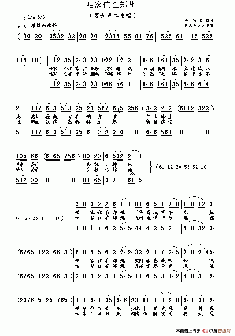 咱家住在郑州 (胡大华曲)(1)_原文件名:《咱家住在郑州》歌谱1 李荫保词 胡大华曲.gif