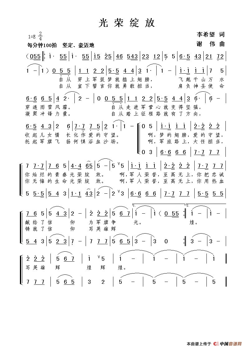光荣绽放(李希望词  谢伟曲)(1)_原文件名:光荣绽放.GIF
