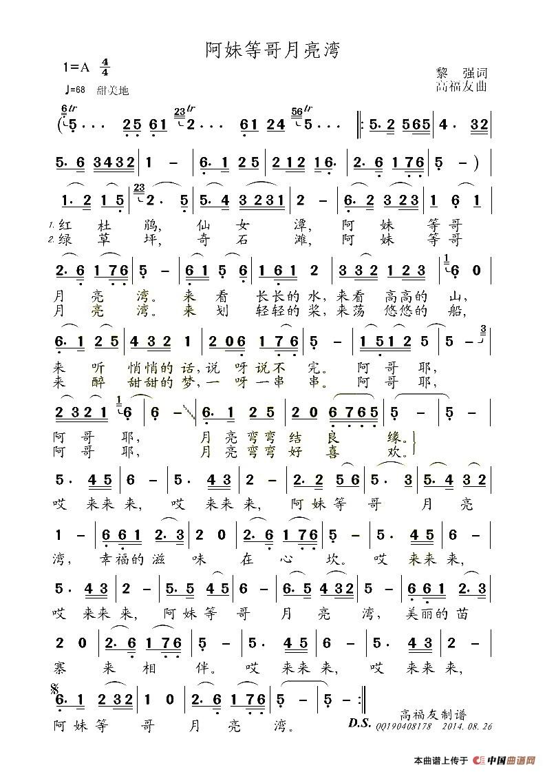 阿妹等哥月亮湾(黎強词 高福友曲)