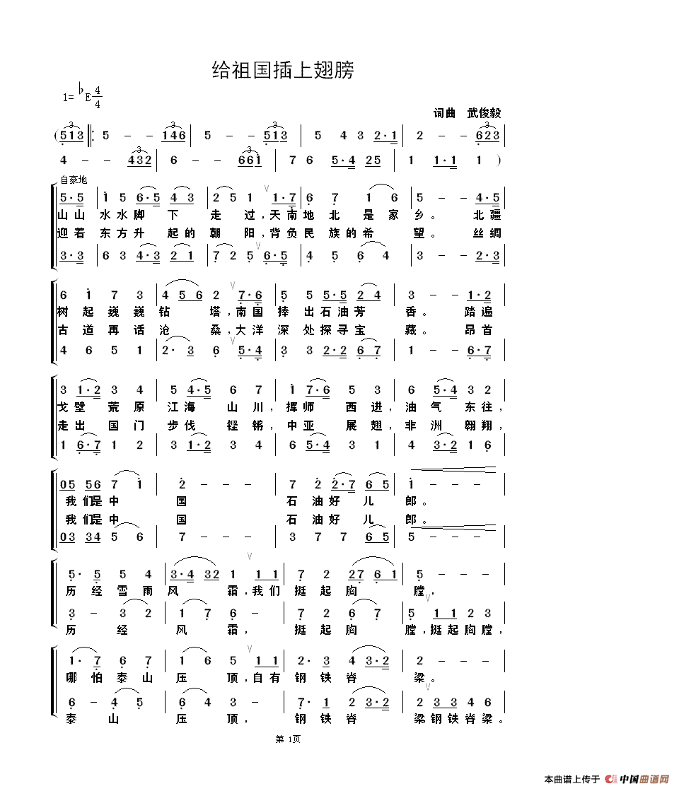 关于《给祖国插上翅膀》曲谱的评论