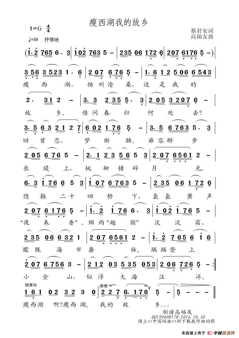 版权声明:中国曲谱网所有曲谱及资料均为作者提供或网友推荐收集整理而来,仅供爱好者学习和研究使用,版权归原作者所有。