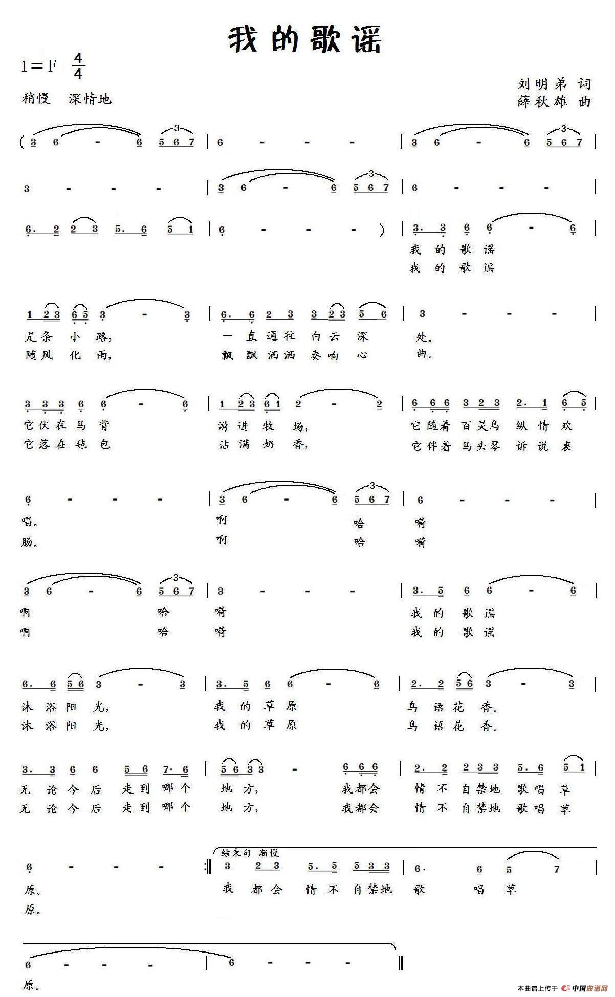 《我的歌谣》文本歌词