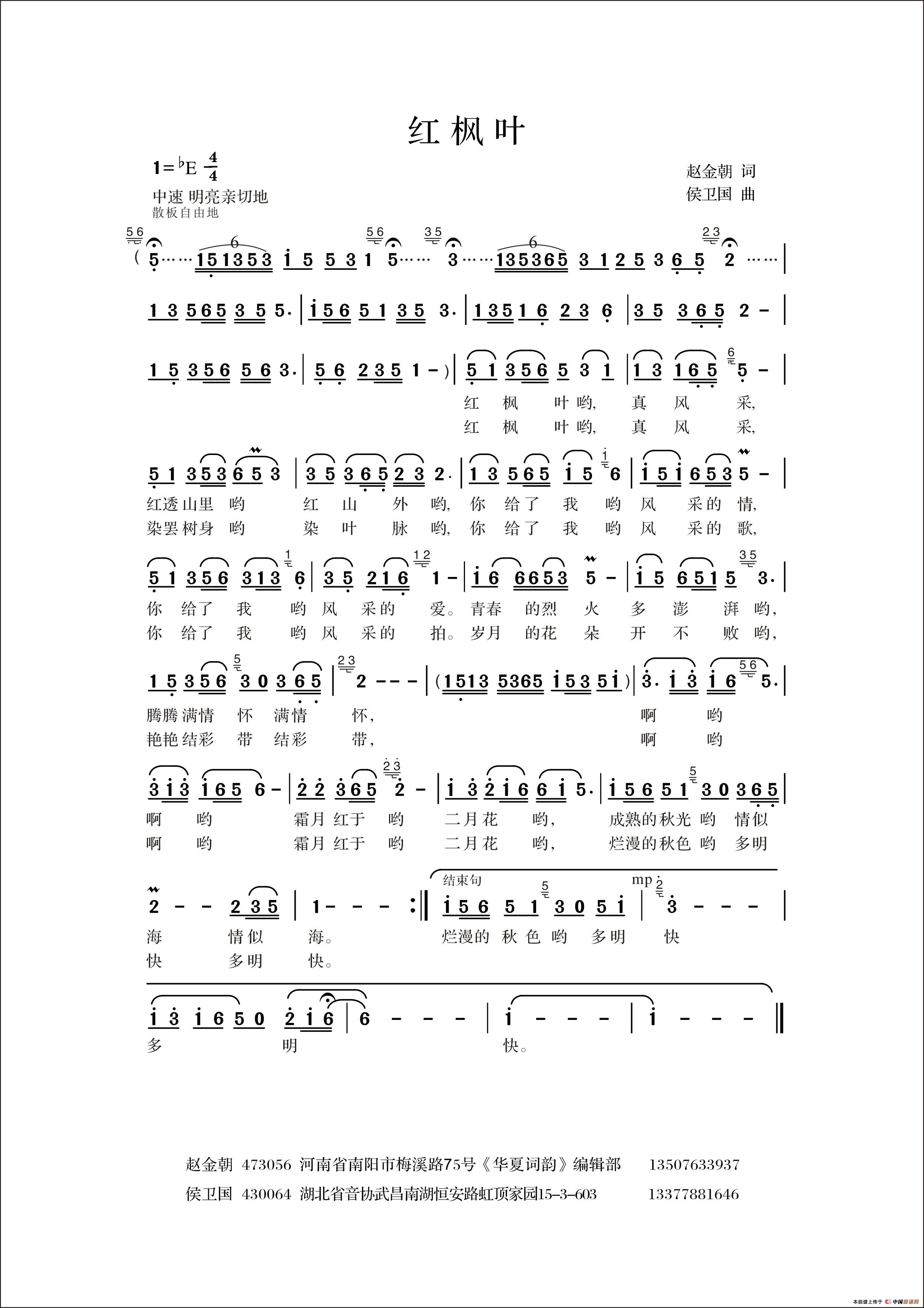 红枫叶(赵金朝词 侯卫国曲)