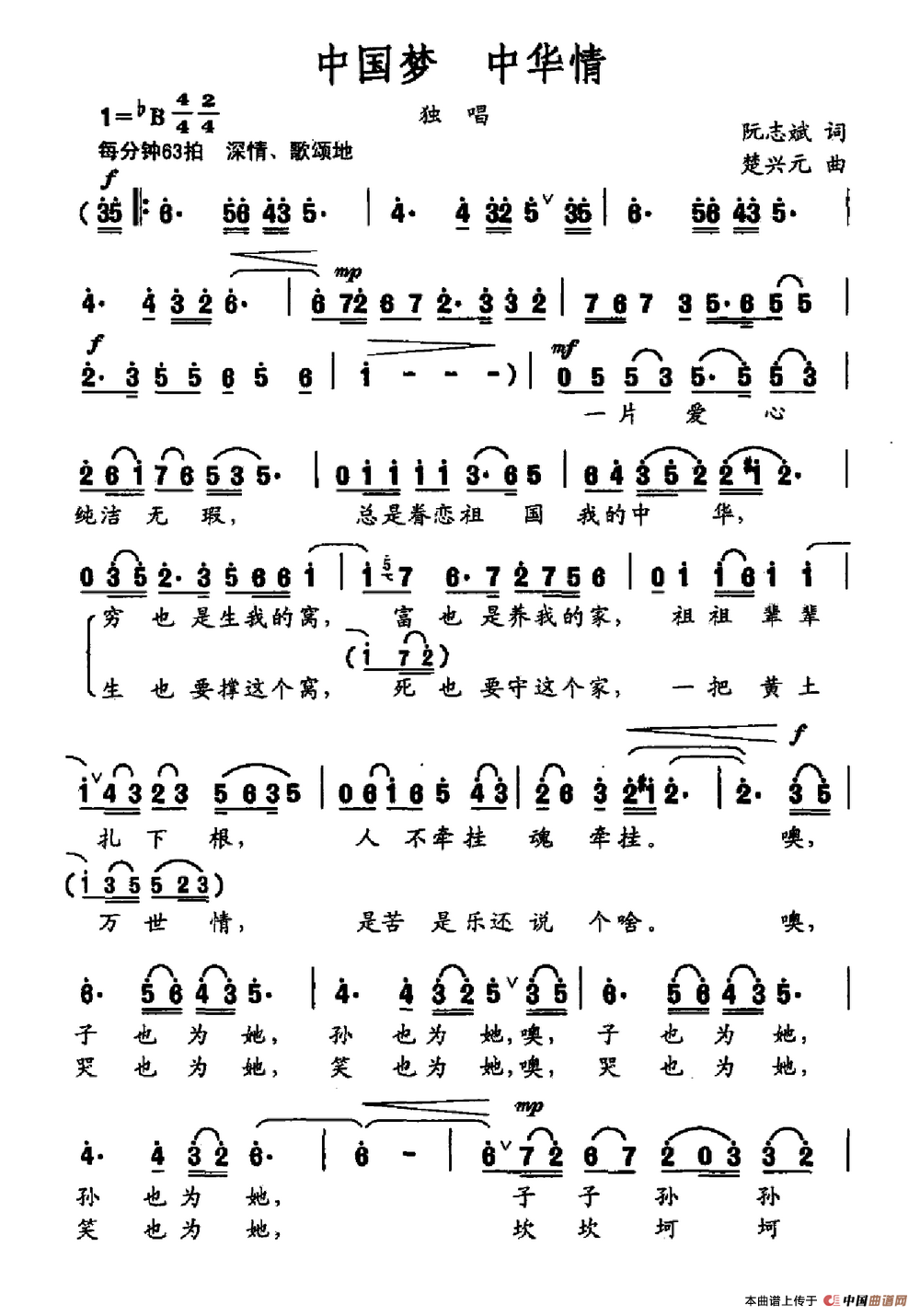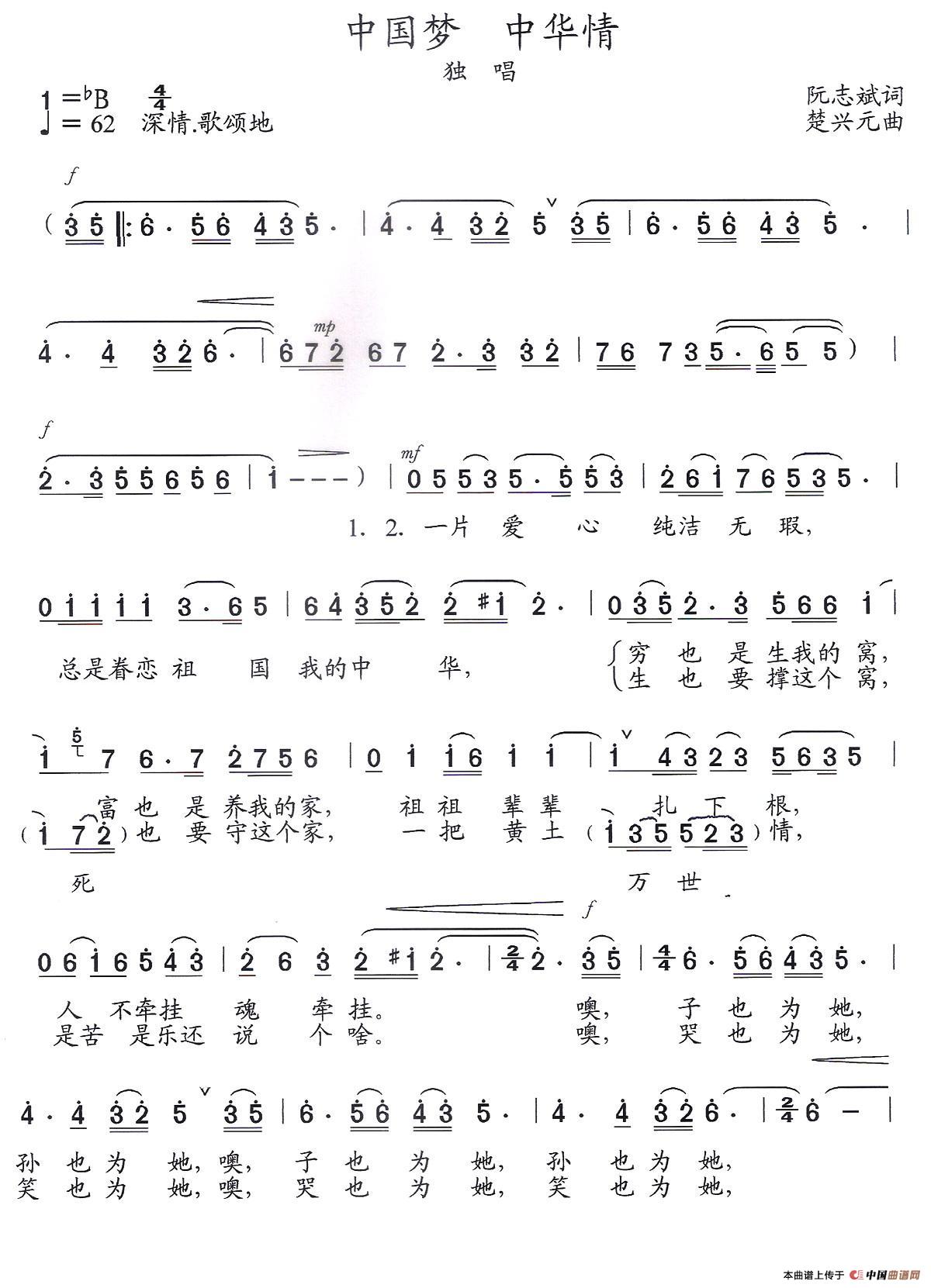 《中国梦 中华情》文本歌词