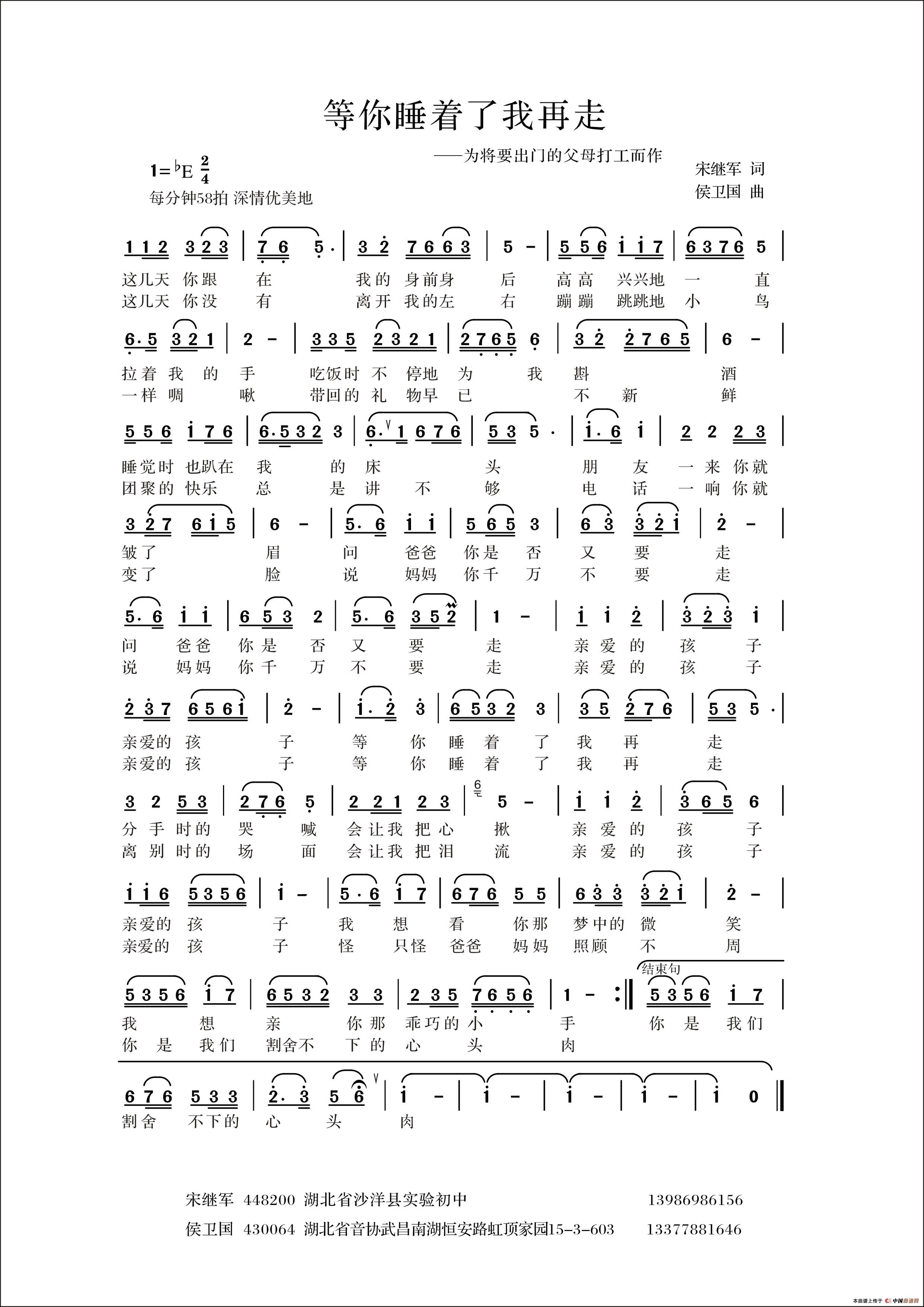 等你睡着了我再走(宋继军词 侯卫国曲)