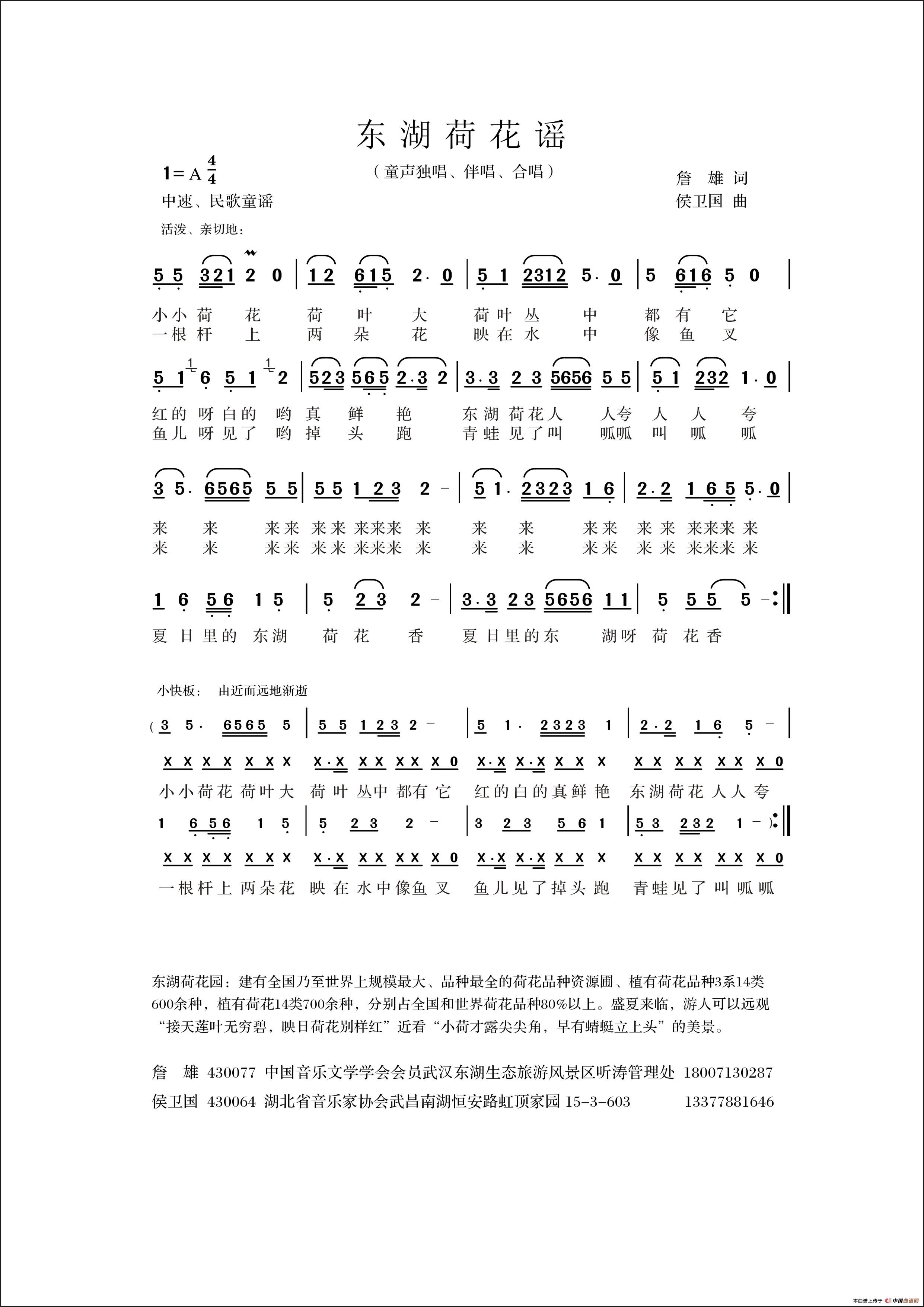 民歌童谣,儿歌。《[东湖荷花谣》 2013年9月21日央视少儿频道视频播放。