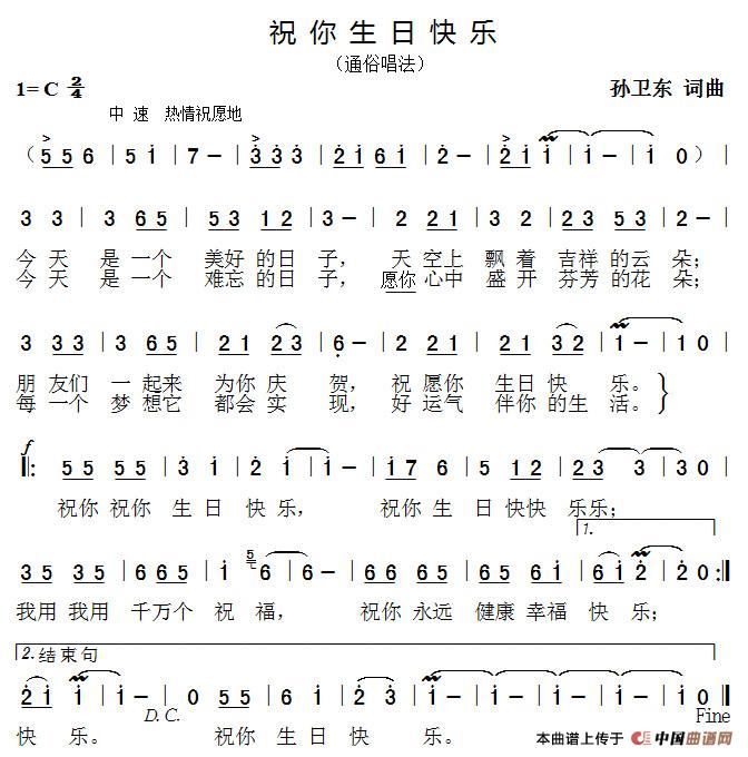 祝你生日快乐(孙卫东词曲)