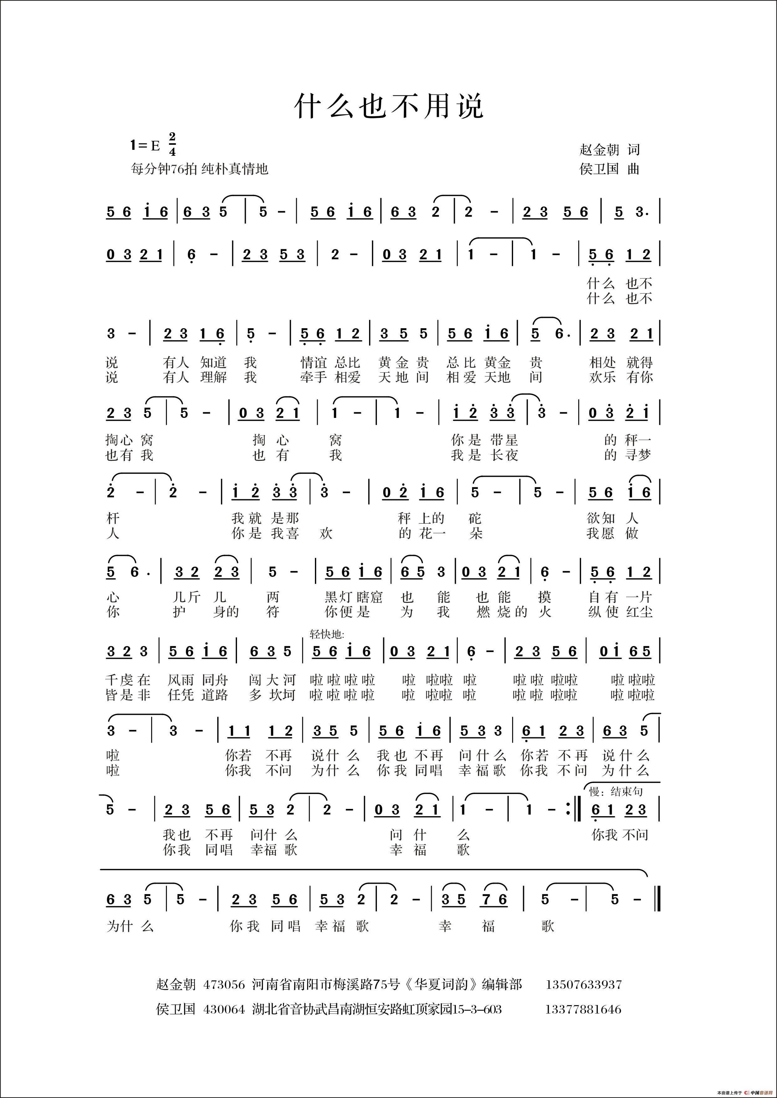 作词:赵金朝   作曲:侯卫国   来源:原创作品   上传:侯卫国   日期:2015-01-17   浏览次数: