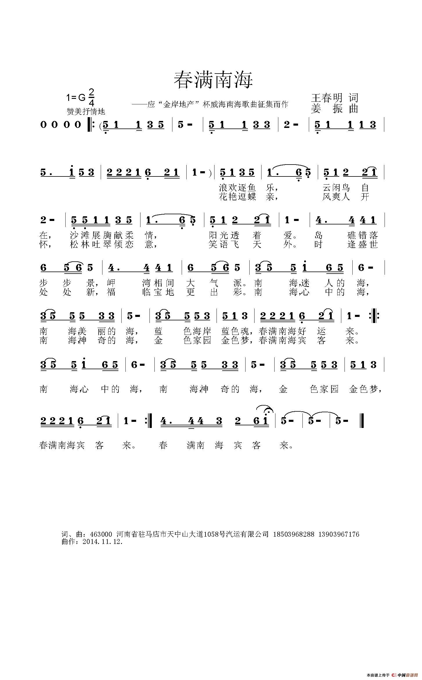 作词:王春明   作曲:姜振   来源:谱友姜振上传   上传:姜振   日期:2015-01-18   浏览次数: