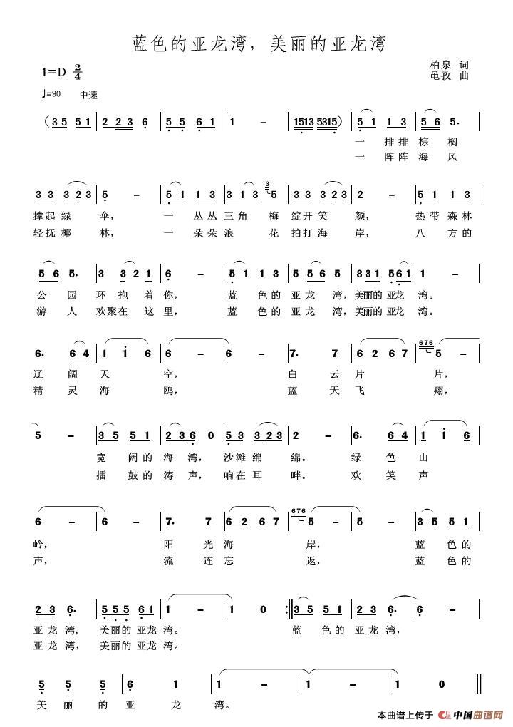 《蓝色的亚龙湾,美丽的亚龙湾》文本歌词