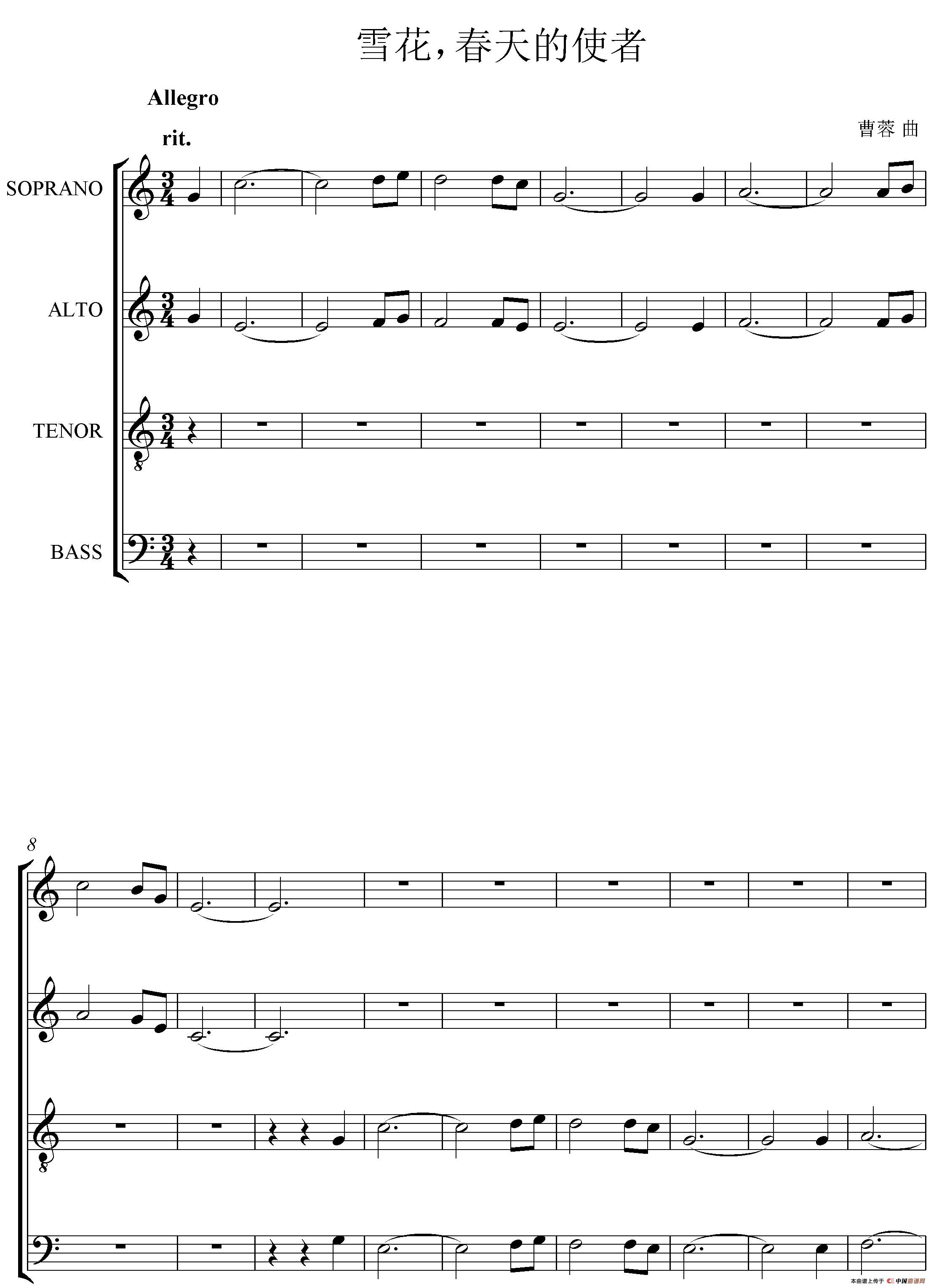 关于《雪花,春天的使者》曲谱的评论
