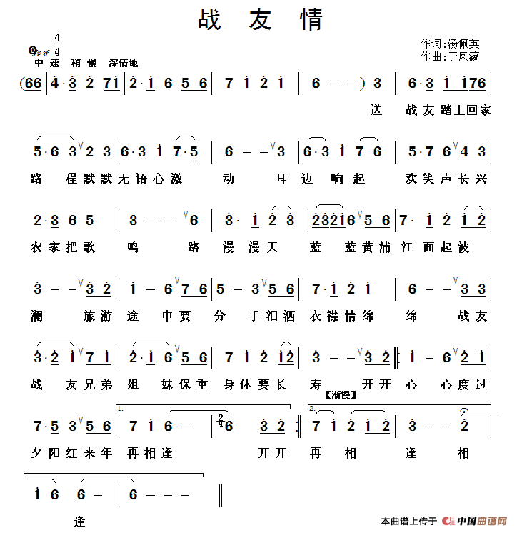 关于《战友情》曲谱的评论