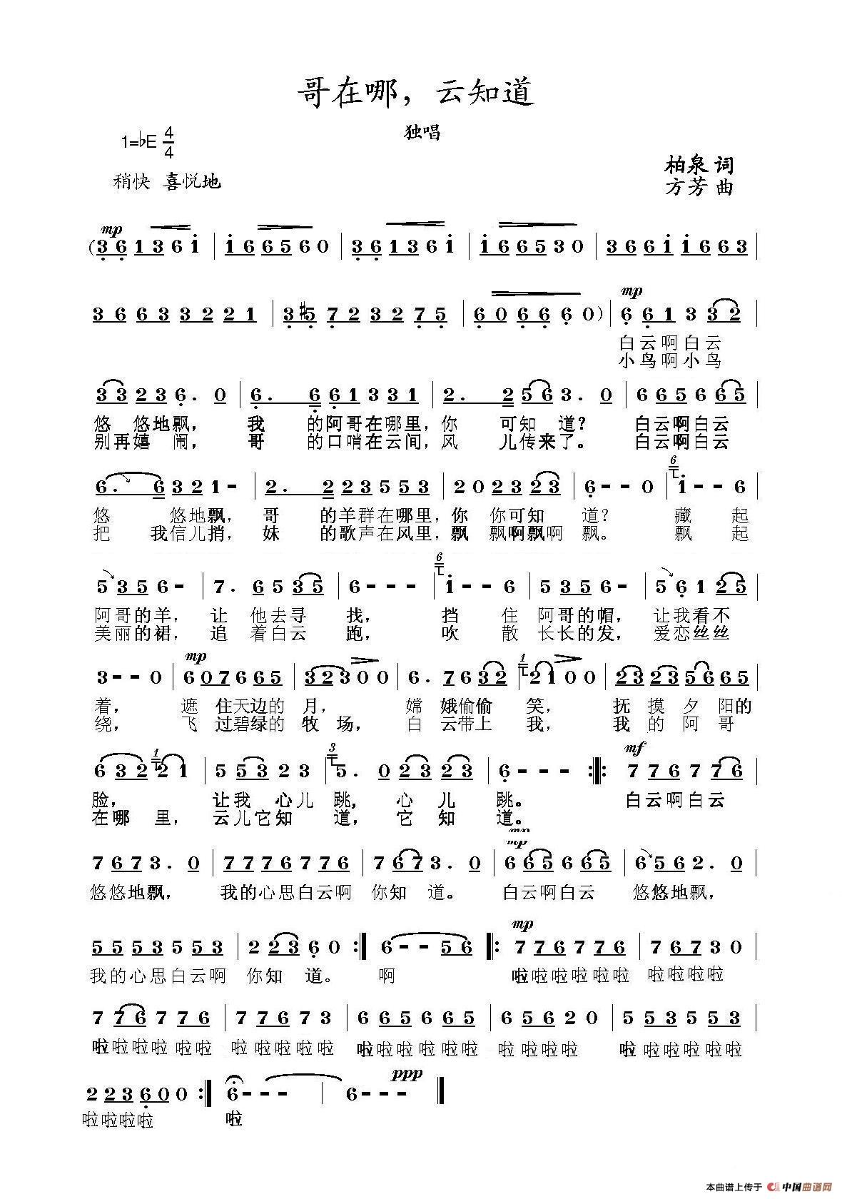 白云啊白云悠悠地飘,我的阿哥在哪里,你可知道?