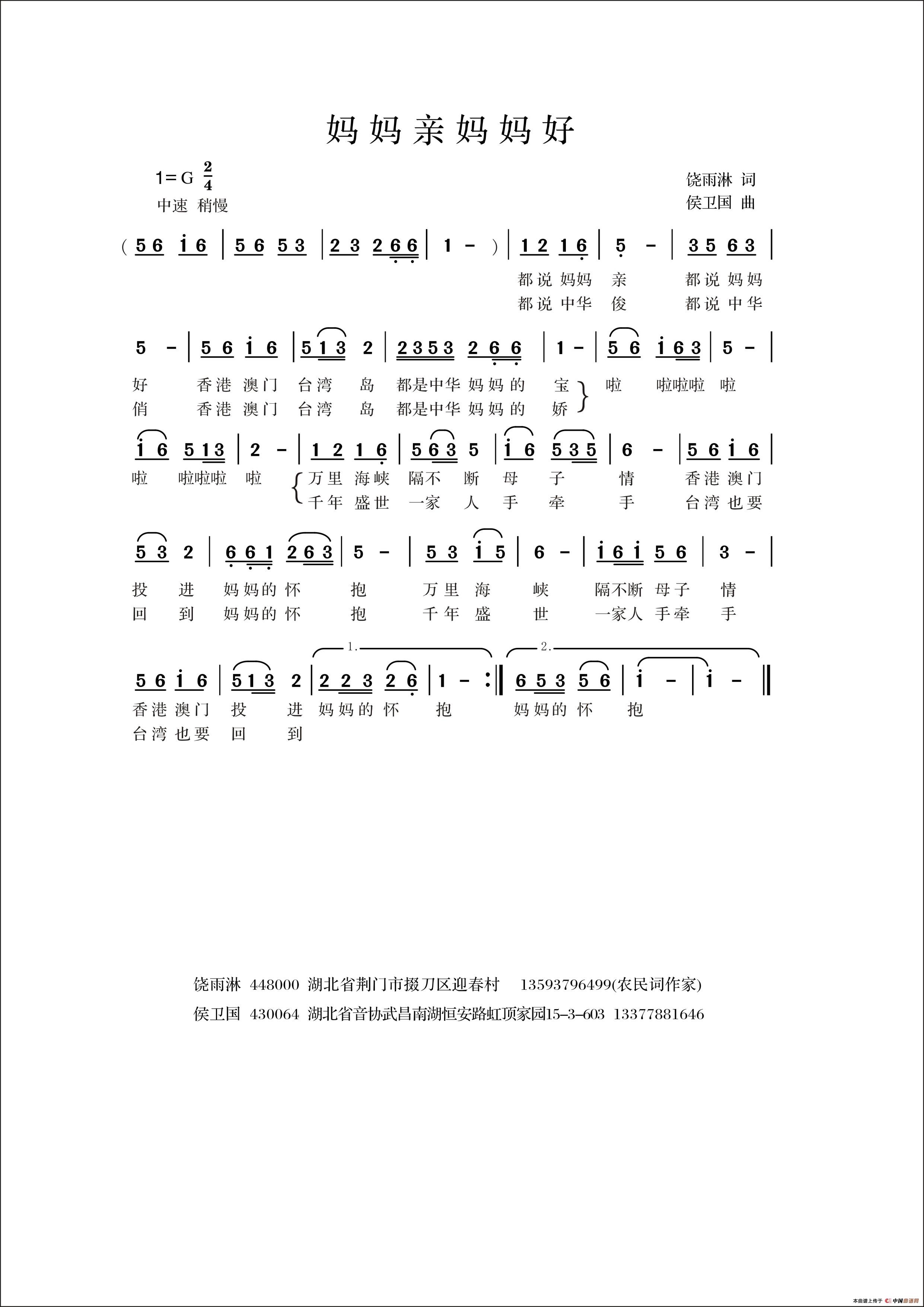 侯卫国原创曲谱专栏